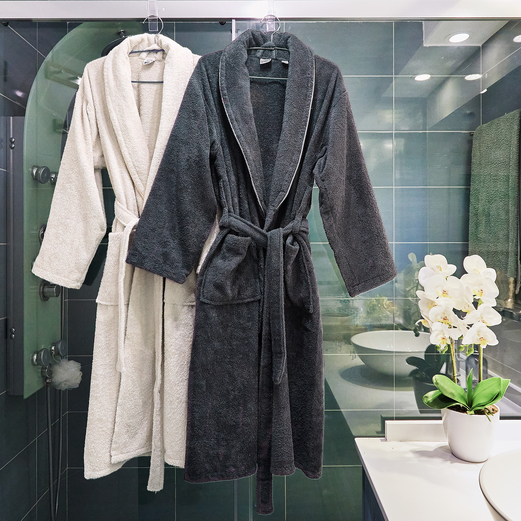Peignoir de Rizo 100% coton de 360 gr / m2 Taille l / xl Certificat Oeko-TEX qui garantit des normes élevées de sécurité et de soins de l'environnement. Design élégant et intemporel Coton de qualité qui donne du réconfort et de touche douce et agréable Léger mais très absorbant Séchage rapide qui évite l'apparence de mauvaises odeurs dans le vêtement Il peut être lavé à la machine adapté au sèche-linge Cou de type smoking, avec deux poches latérales larges et des soins finis Fermeture nouée avec une ceinture du même tissu qui vous permet d'ajuster confortablement le vêtement au corps Il est recommandé de ne pas utiliser de blanchiment ou d'adoucisseurs afin de ne pas endommager leur qualité