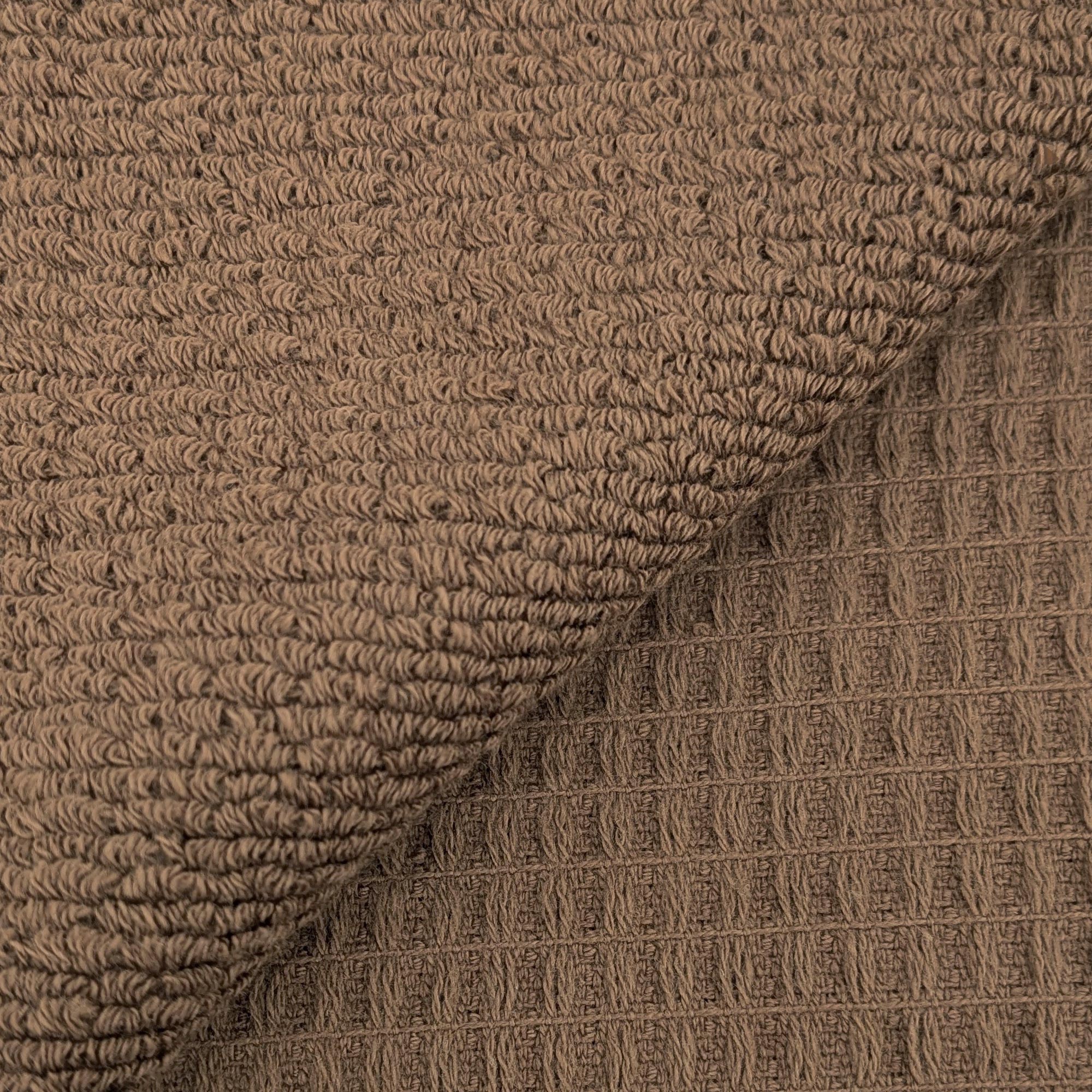 Linge de bain composé en 100% coton bio Gots, avec un grammage de 400 g/m2, offrant une éponge légère et moderne aspect nid d'abeille et bouclette éponge à l'intérieur.