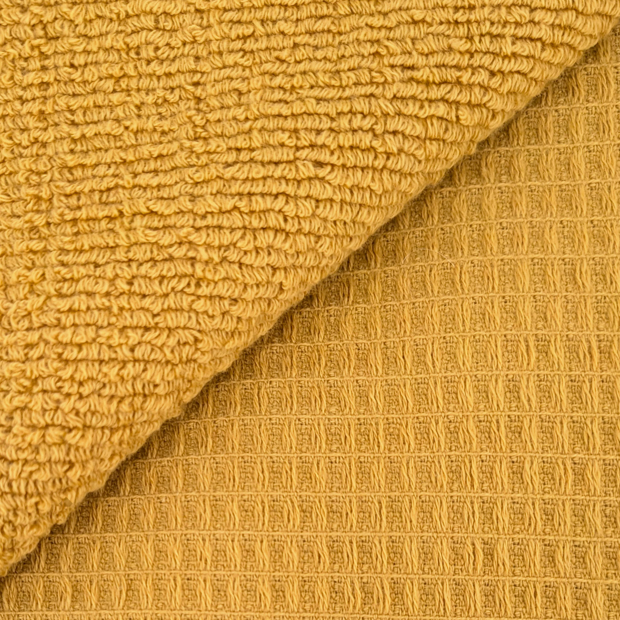 Linge de bain composé en 100% coton bio Gots, avec un grammage de 400 g/m2, offrant une éponge légère et moderne aspect nid d'abeille et bouclette éponge à l'intérieur.