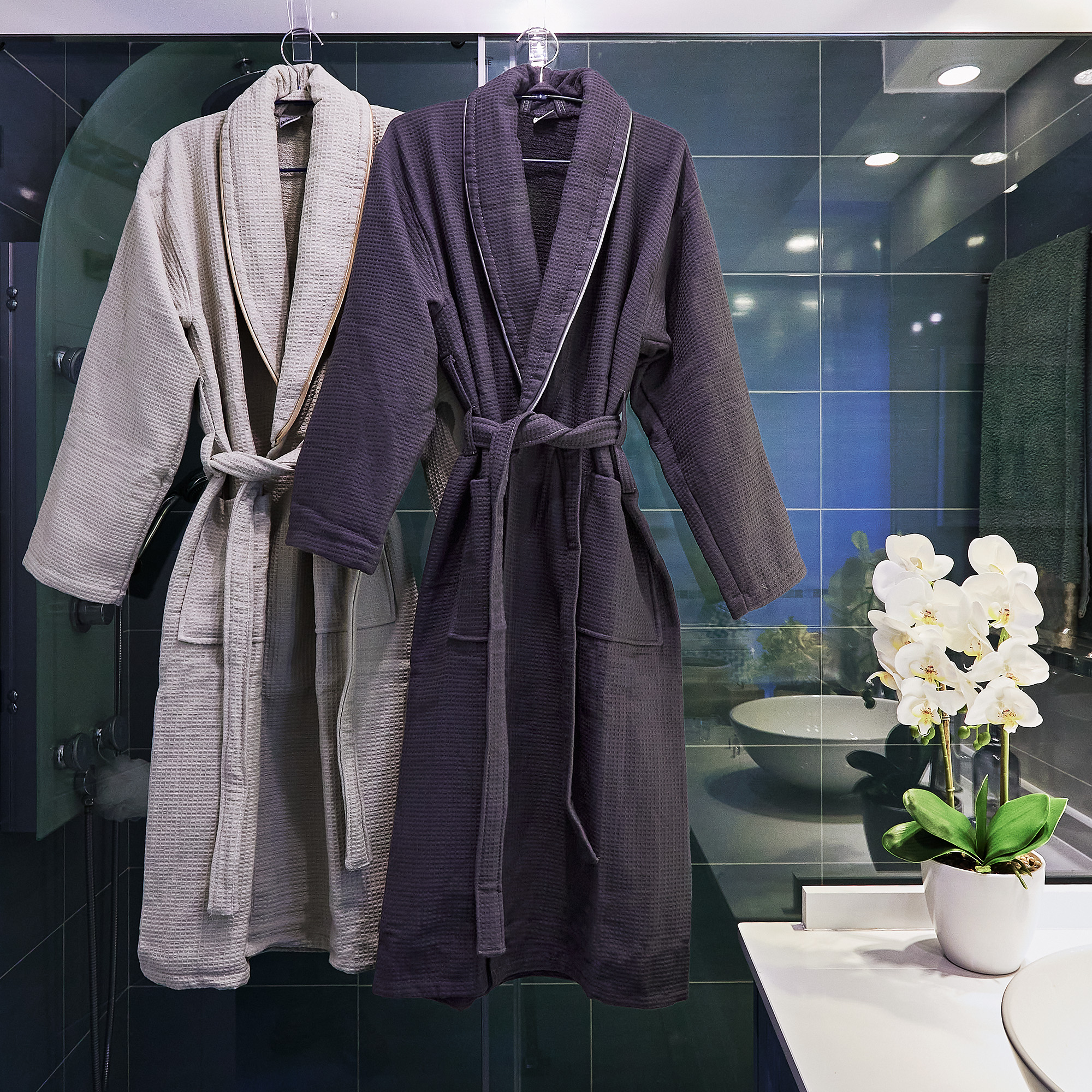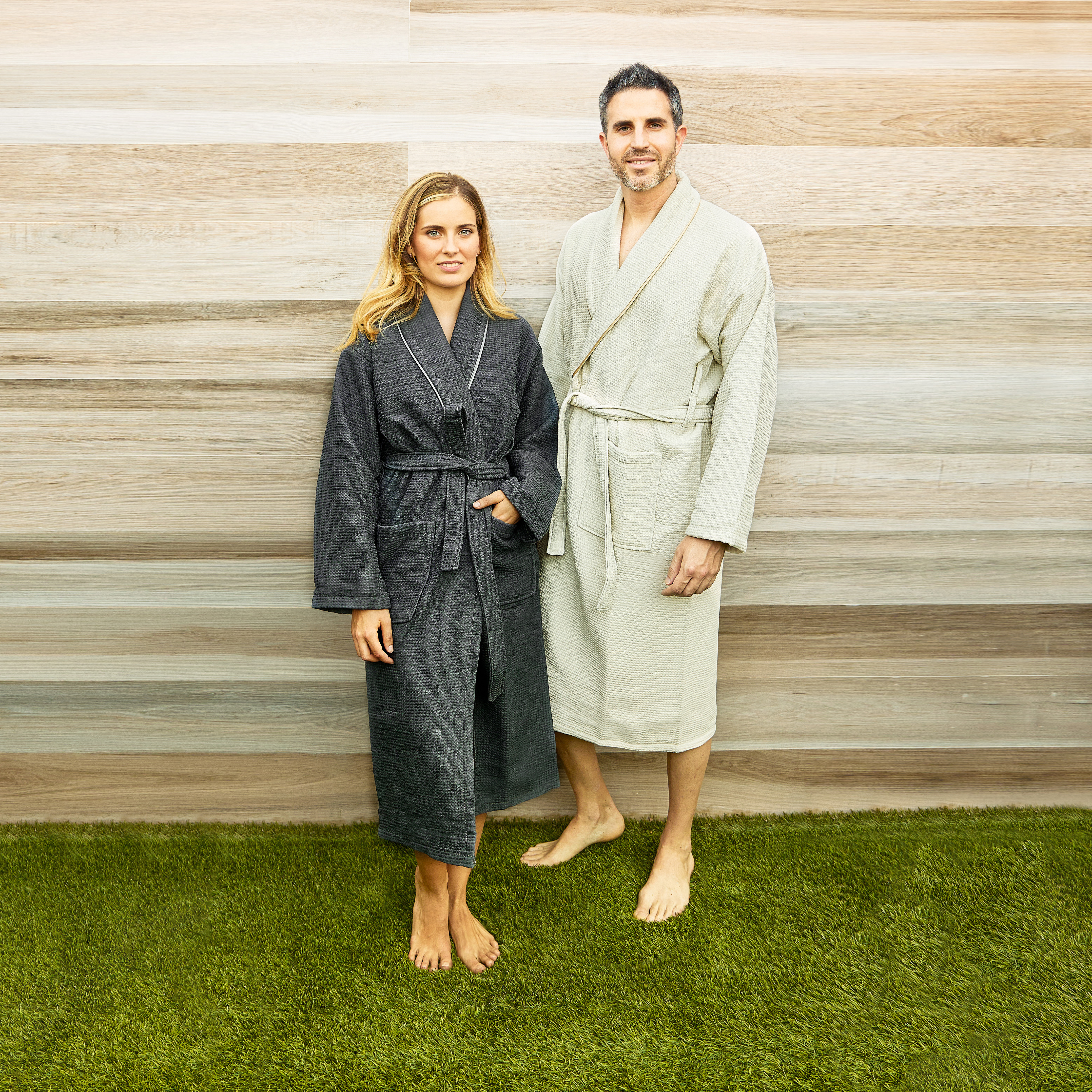 Peignoir Bee Nest 100% coton de 360 gr / m2 Taille s / m Certificat Oeko-TEX qui garantit des normes de sécurité élevées et des soins environnementaux Design élégant et intemporel Coton de qualité qui donne du réconfort et de touche douce et agréable La structure de votre tissu de nid d'abeilles vous offre une grande légèreté, un confort et vous permet de plier le vêtement de manière compacte pour le stockage ou le transfert. Parfait pour le faire lors de vos voyages. Séchage rapide qui évite l'apparence de mauvaises odeurs dans le vêtement Il peut être lavé à la machine adapté au sèche-linge Cou de type smoking, avec deux poches latérales larges et des soins finis Fermeture nouée avec une ceinture du même tissu qui vous permet d'ajuster confortablement le vêtement au corps Il est recommandé de ne pas utiliser de blanchiment ou d'adoucisseurs afin de ne pas endommager leur qualité