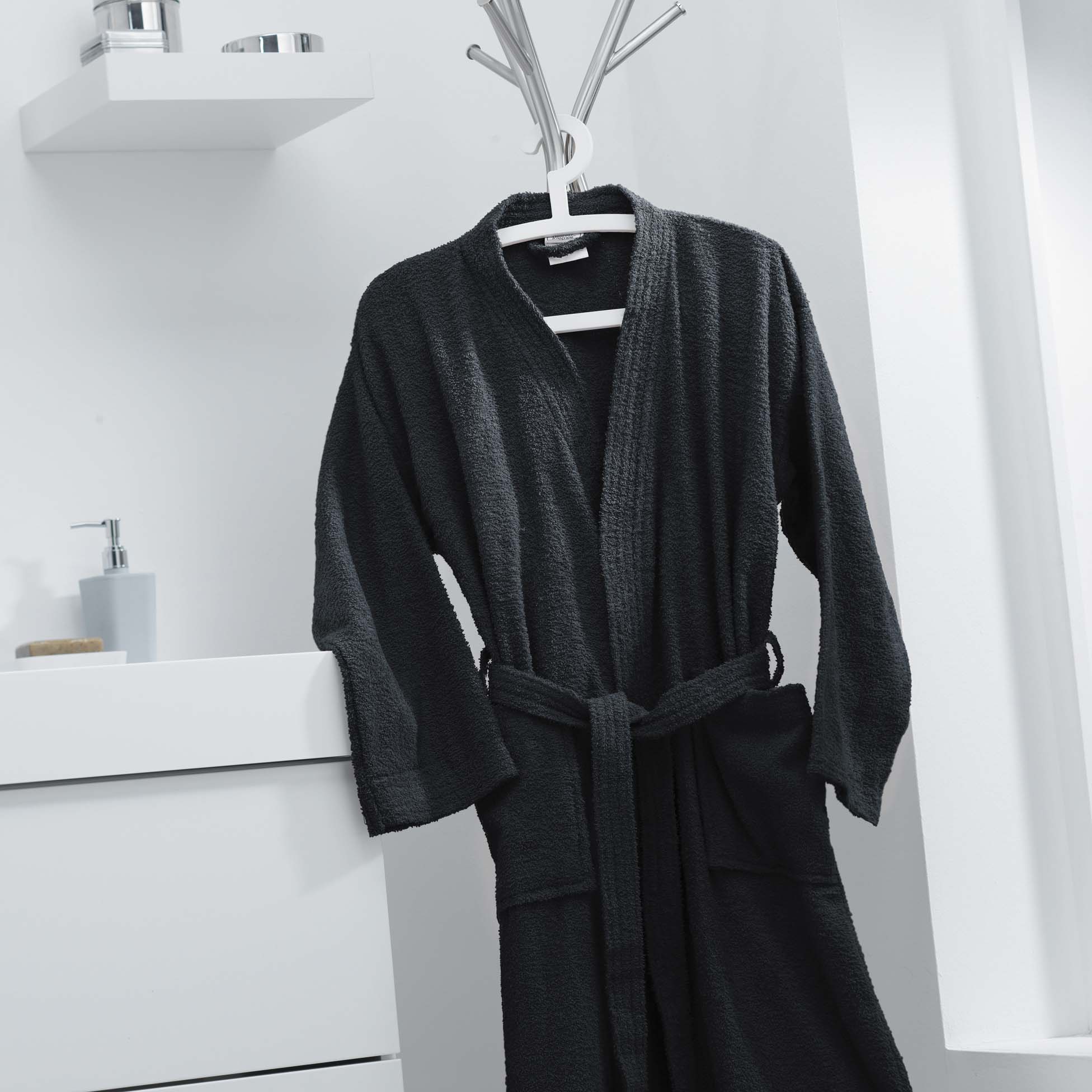 Peignoir de bain éponge 100% coton  Col : kimono. Taille unique. Grammage : 330 gr/m². Peignoir tres doux avec double passant au niveau de la ceinture et 2 poches plaquées. Lavage en machine a 40°C.