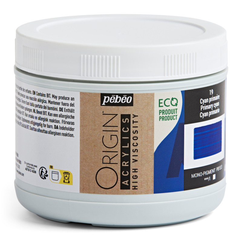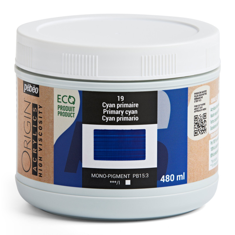 Peinture acrylique - Cyan primaire - 19 - Haute viscosité - Pébéo - Origin acrylics - 480ml