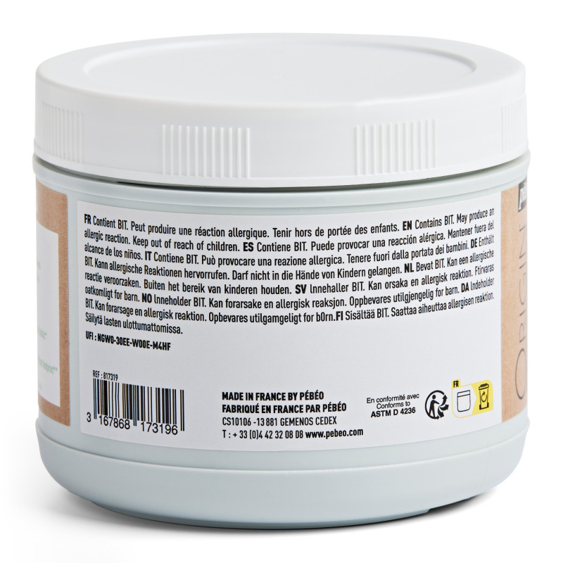 - Eco-conçue : Formulée à partir d'un liant 100% recyclé, cette peinture réduit de 80% l'empreinte carbone par rapport à un liant classique. Conditionnée dans un éco-tube en papier-PE certifié FSC®, diminuant de 59% la quantité de plastique.