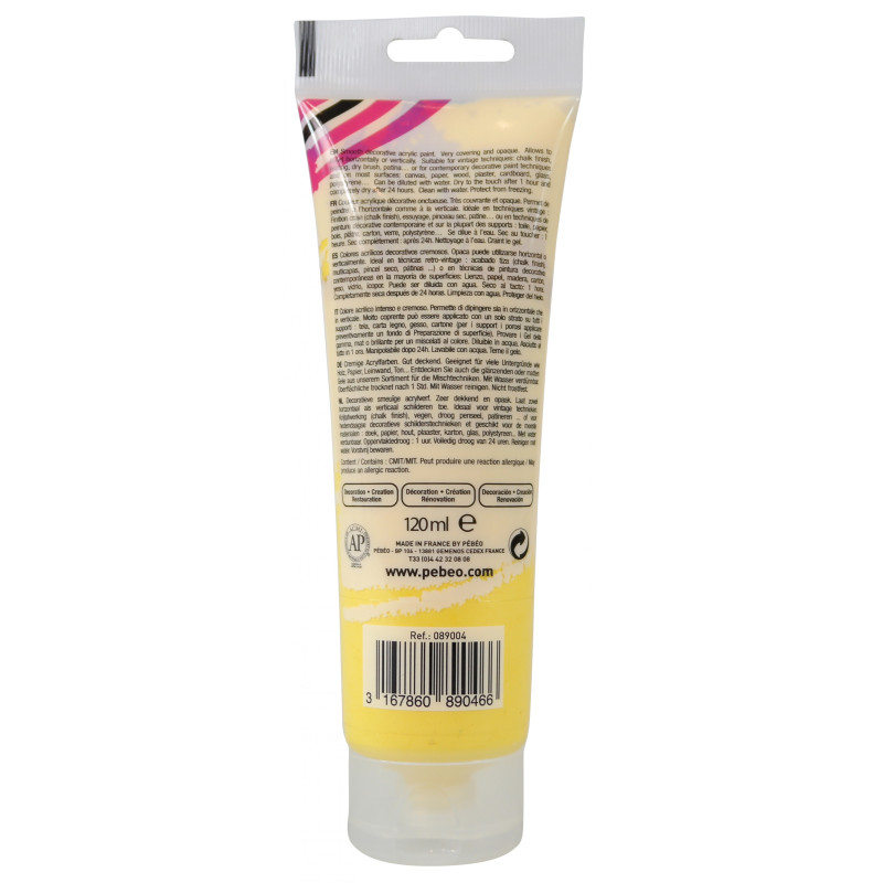 | Libellé | Peinture acrylique - Jaune - Mat - 04 - Multi-supports - DécoCrème - Pébéo - 120ml |