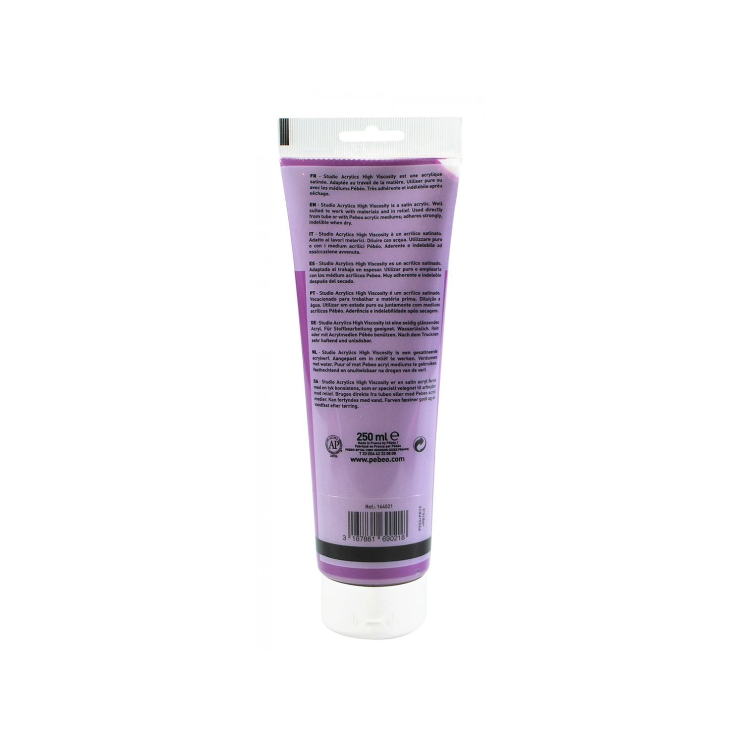 Peinture acrylique base eau de qualité fine. La peinture acrylique Studio Acrylics est idéale pour les peintres professionnels comme amateurs. Cette peinture, une fois appliquée, a un effet fluorescent et phosphorescent et résiste particulièrement bien à la lumière. Laissez parler votre imagination et créez des tableaux uniques ou inspirés d'autres ! De couleur violet transparent, la peinture est lumineuse et pigmentée avec une finition mate satinée. Le temps de séchage moyen est de 1 à 8 jours selon la quantité de peinture. Elle s'applique sur de multiples supports tels que : la toile, le carton, le bois ou encore le métal. 250 ml