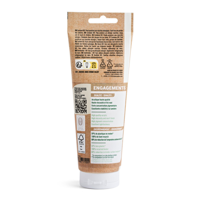 En choisissant cette gamme éco-conçue, vous contribuez à la réduction des déchets plastiques et à la promotion de pratiques durables. Adaptée à divers supports comme la toile, le carton, le bois, le métal, le papier, le plâtre et la pierre. Parfaite pour diverses techniques artistiques.