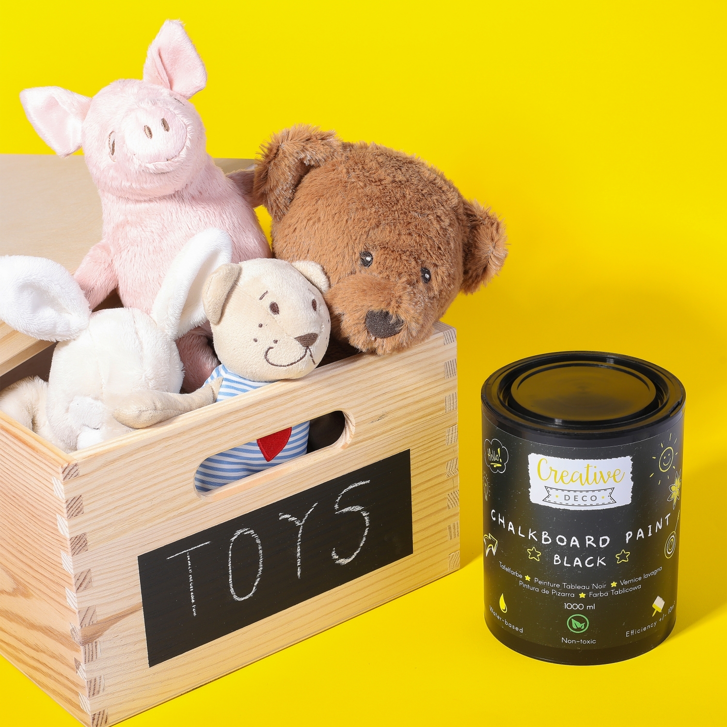 MULTI-SURFACE – La peinture pour tableau fonctionnera également parfaitement sur d'autres surfaces que les murs. Grâce à sa formule unique et couvrant, vous pouvez l'utiliser pour peindre sur le bois, le métal, le verre, le MDF, le papier, la toile du tissu et bien d’autres. La peinture sèche en 4 heures environ ; cependant, il peut être entièrement utilisé après environ 48 heures. UNIVERSEL – Grâce à sa formule unique, notre peinture à tableau est un produit multi-usage et polyvalent. Vous pouvez l'utiliser pour peindre vos murs en les transformant en un tableau noir où vous pouvez écrire toutes vos notes importantes, vos pensées, vos horaires et plus encore ! Il peut être peint dans votre bureau, cuisine, à l’école ou chambre d'enfant afin qu'ils puissent découvrir leur motricité et leur créativité pendant leur temps libre ! À BASE D’EAU - La peinture pour tableau présente de nombreux avantages : l'odeur des peintures à l'eau est moins intense. De plus, les peintures à l'eau sèchent plus rapidement que leurs homologues à base de solvant et l'application est plus facile. De plus, il est résistant à l'eau - vous pouvez facilement essuyer le contenu écrit avec un chiffon humide. HAUTE EFFICACITÉ – Grâce à sa formule unique, la peinture avec volume de 1L est très efficace. Un pot de peinture peut couvrir jusqu'à 10 m² de la surface. L'efficacité dépend du nombre de couches, du leur épaisseur et du type de surface.