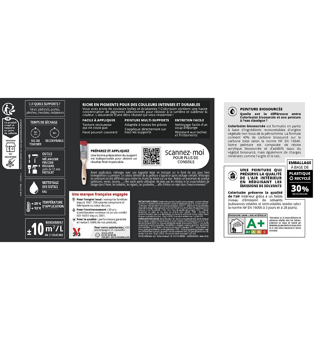 | Libellé | Peinture Colorissim Velours farine de seigle 2 L |
