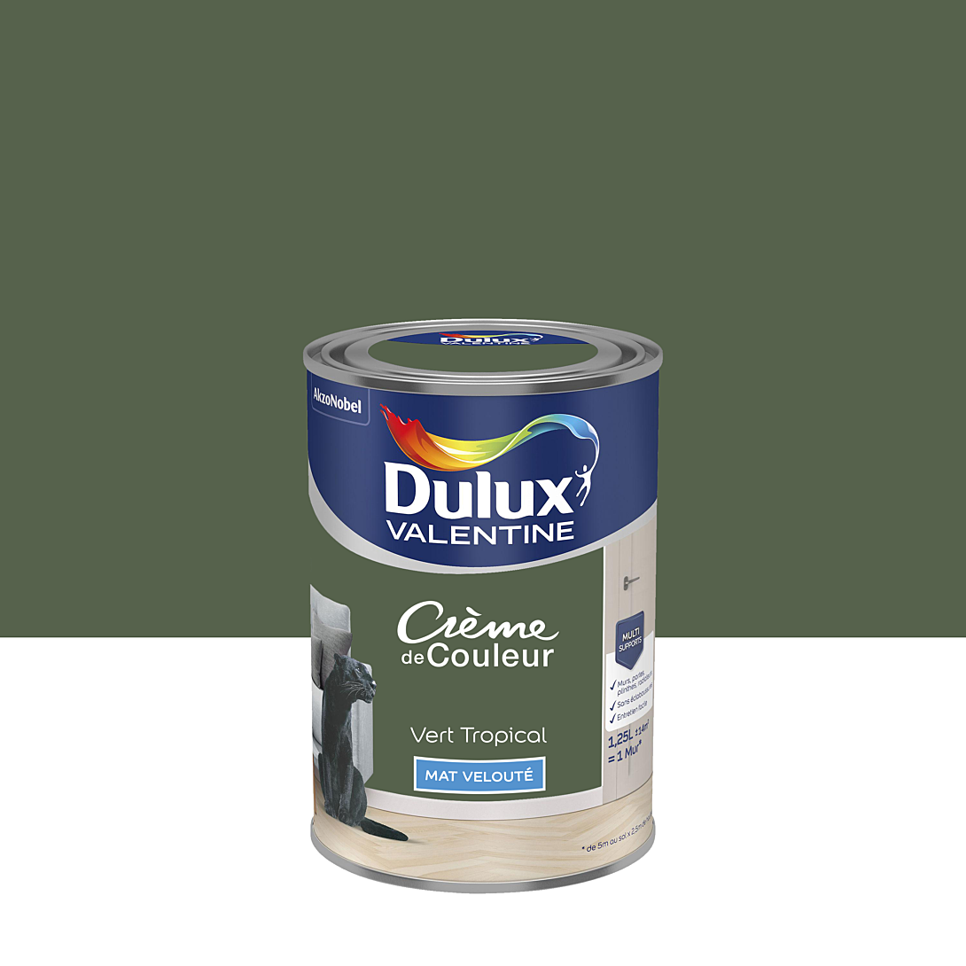 | Libellé | Peinture Crème De Couleur Dulux Valentine Mat Vert Tropical 1.25L |