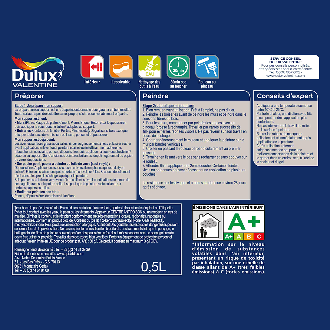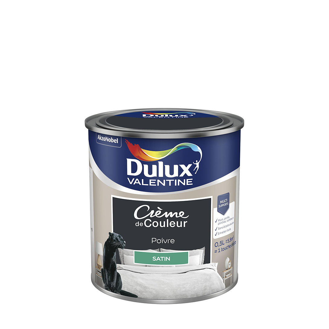 | Libellé | Peinture Crème De Couleur Dulux Valentine SATIN Poivre 0.5L |