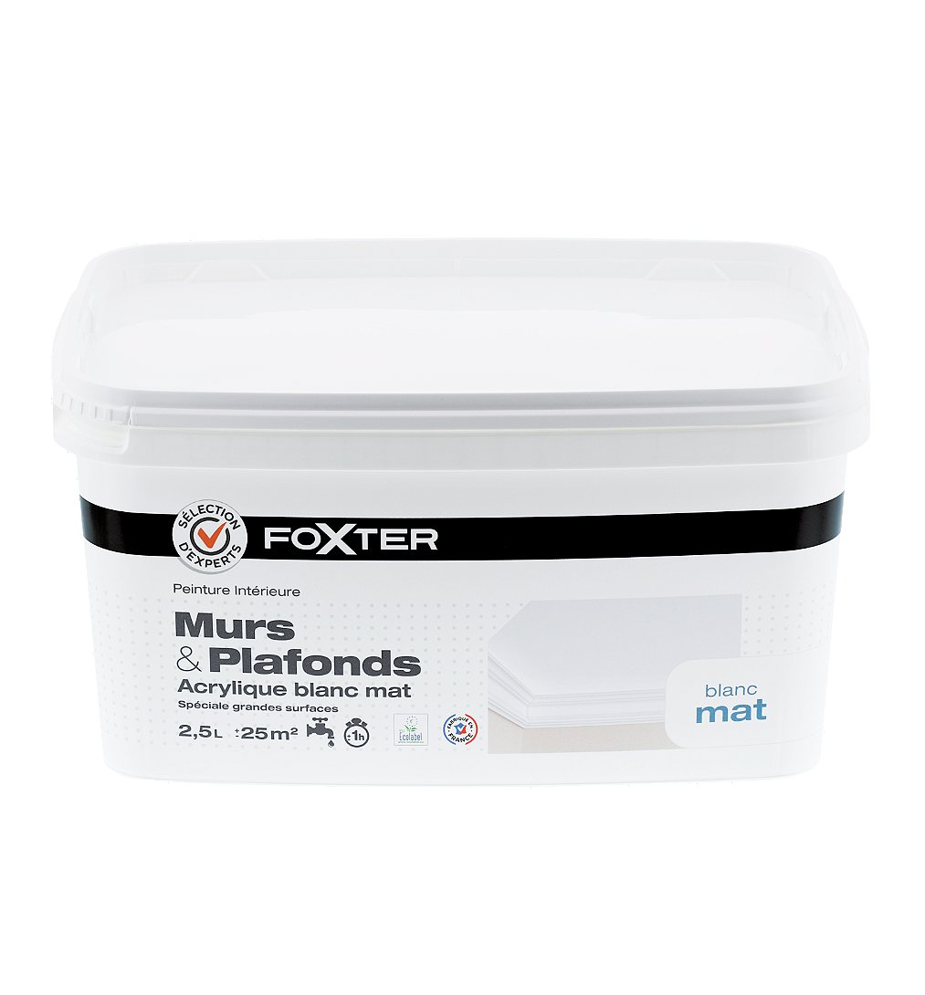 | Libellé | Peinture Mur et Plafond Mat, Blanc, 2,5L - Sélection d'Experts - Foxter |