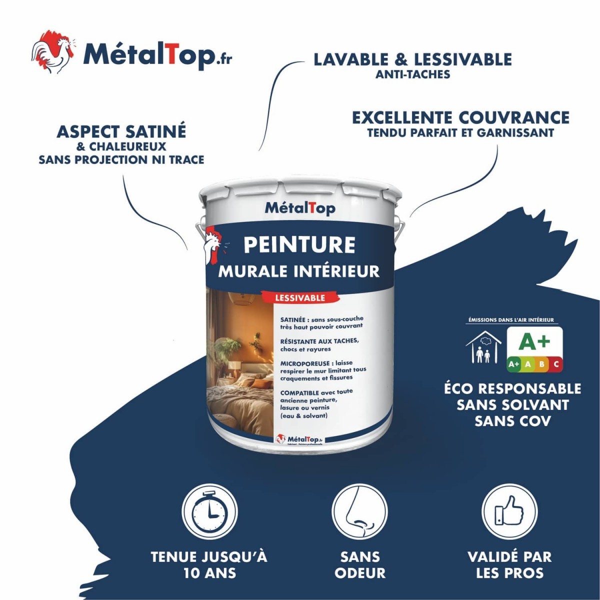 Peinture murale intérieur, satinée. Lessivable. Parfaite résistance aux chocs et à l'humidité.
