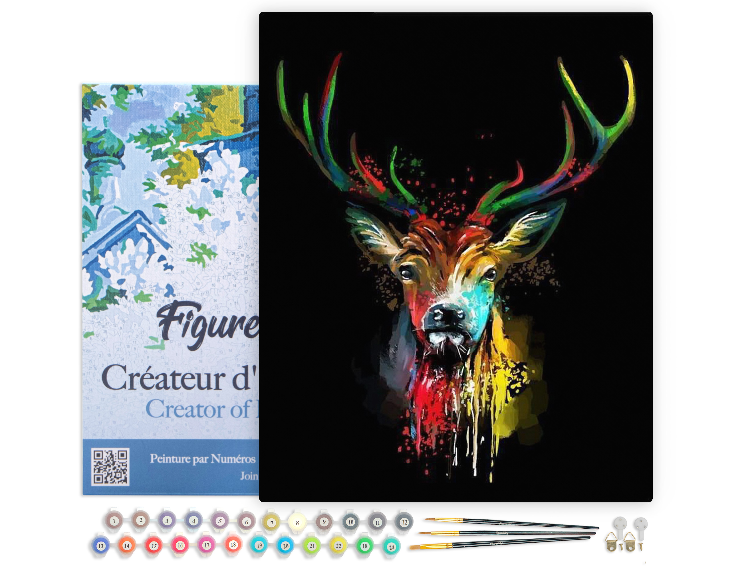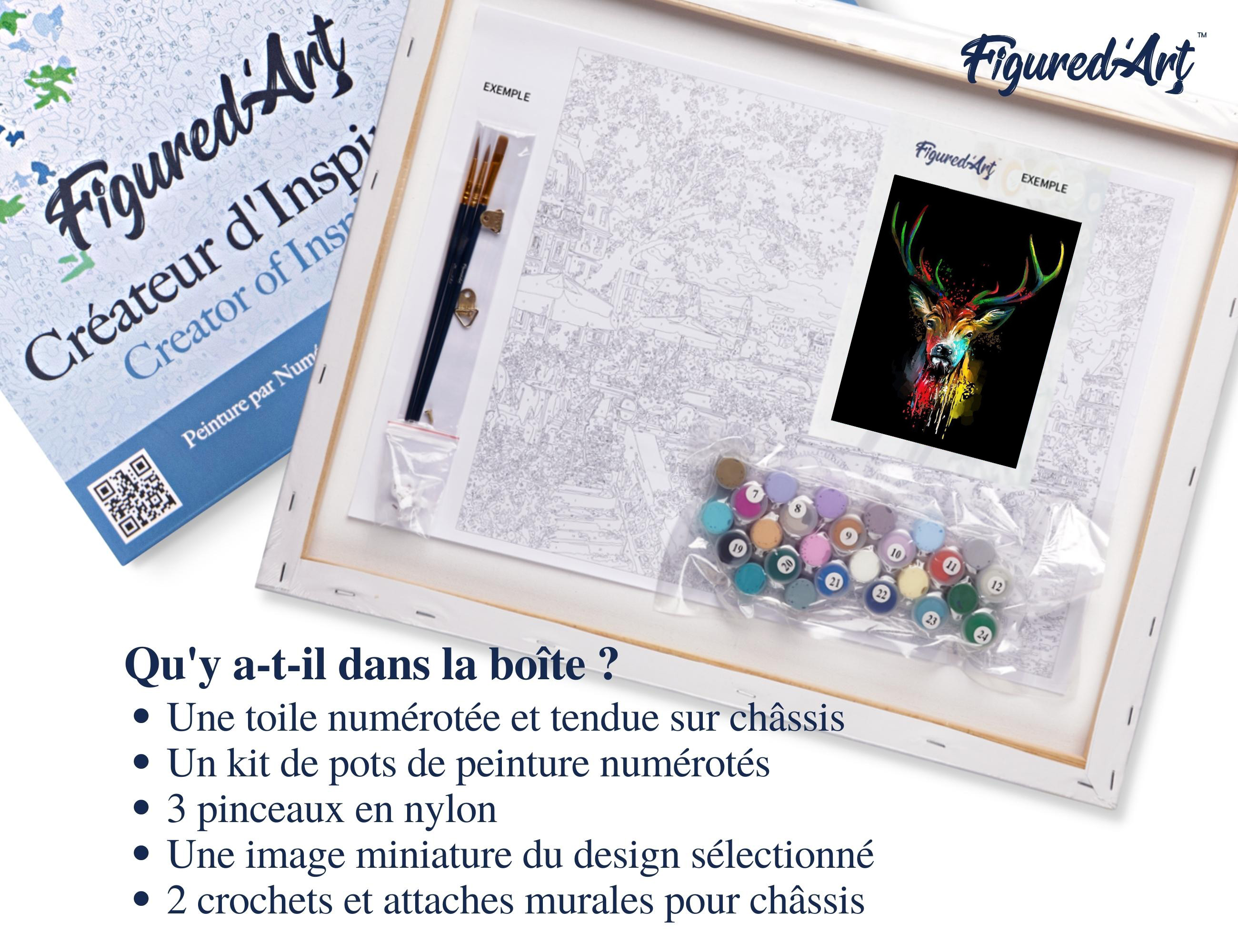 | Libellé | Peinture par Numéro Figured'Art avec Cadre - Cerf en Couleur - Kit de Loisir Créatif DIY Numéro d'Art Complet - 40x50cm toile tendue sur châssis |