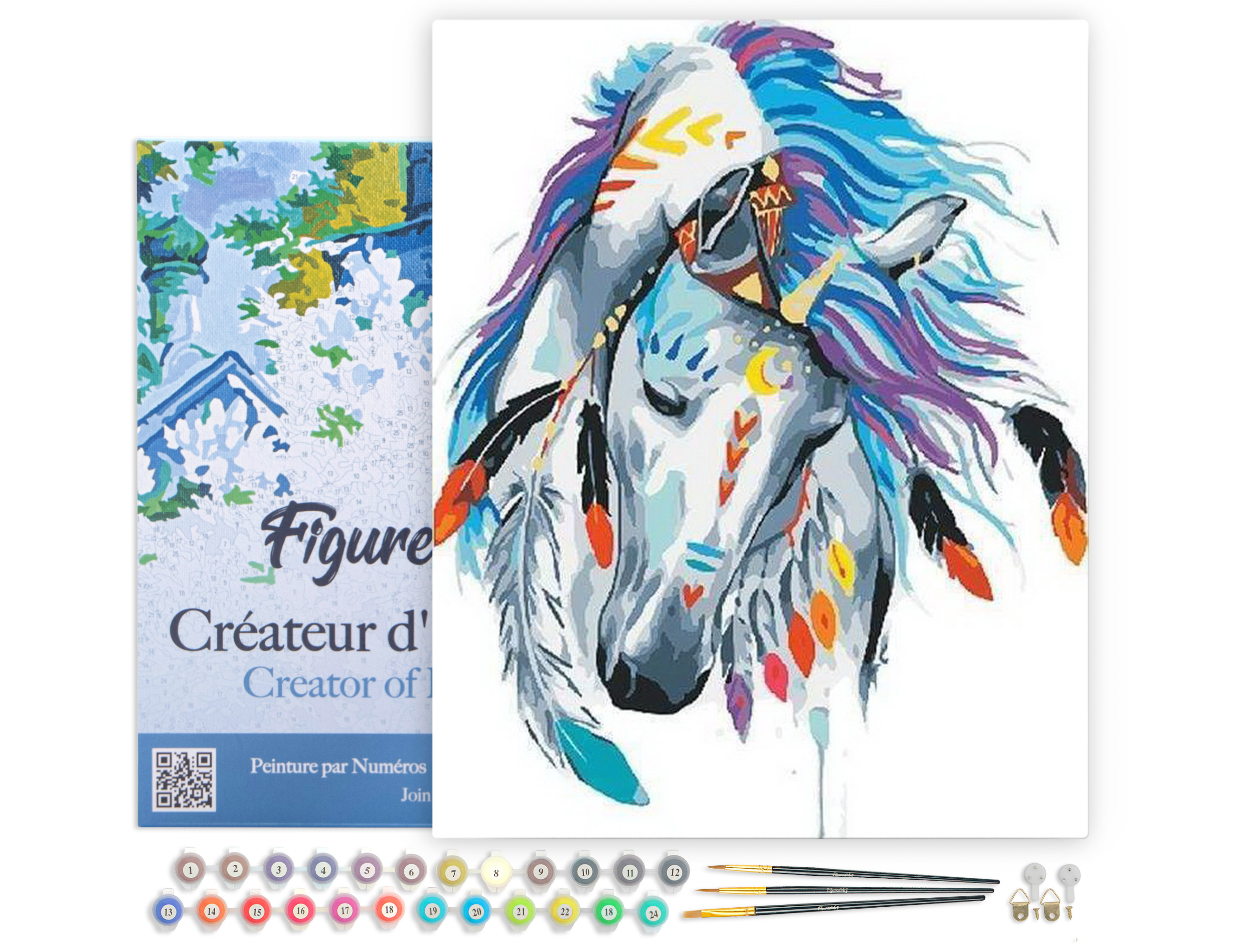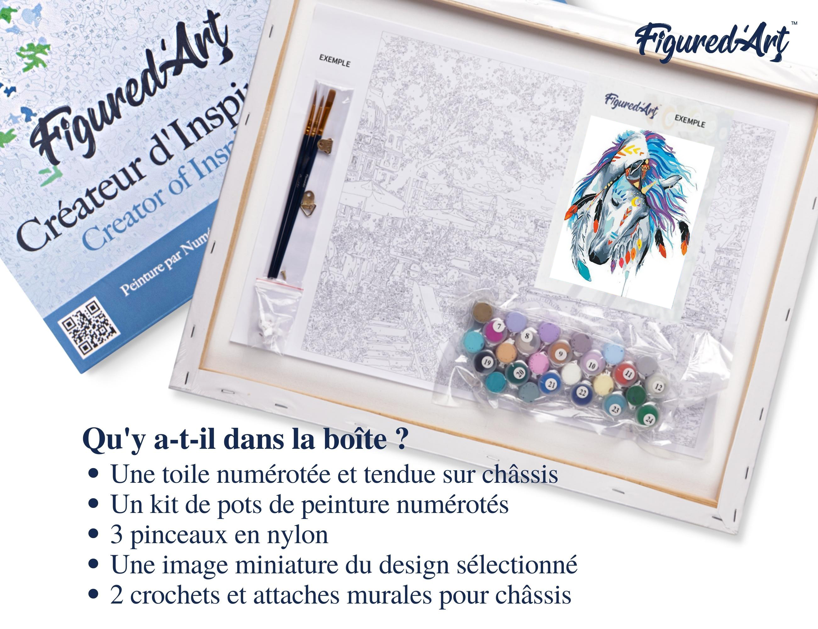 | Libellé | Peinture par Numéro Figured'Art avec Cadre - Cheval de Fête - Kit de Loisir Créatif DIY Numéro d'Art Complet - 40x50cm toile tendue sur châssis |