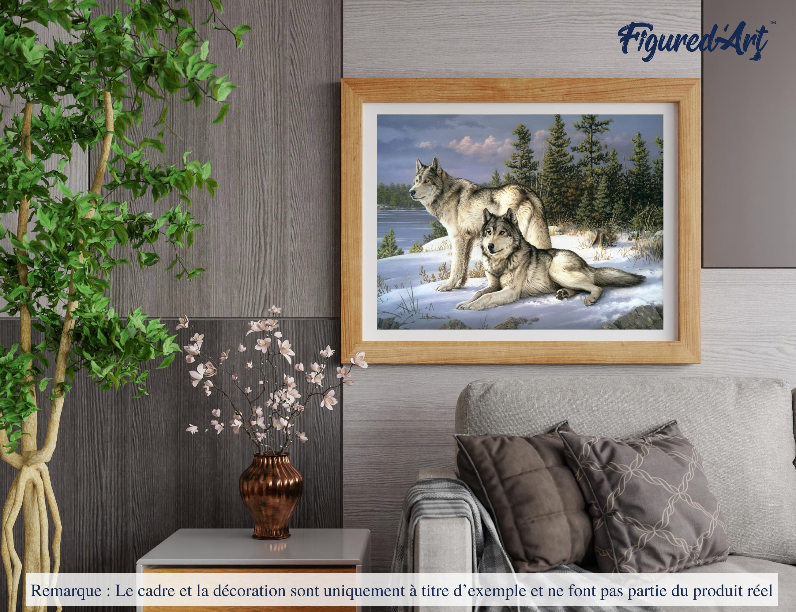 Peinture par Numéro Figured'Art avec Cadre - Couple de loups - Kit de Loisir Créatif DIY Numéro d'Art Com
