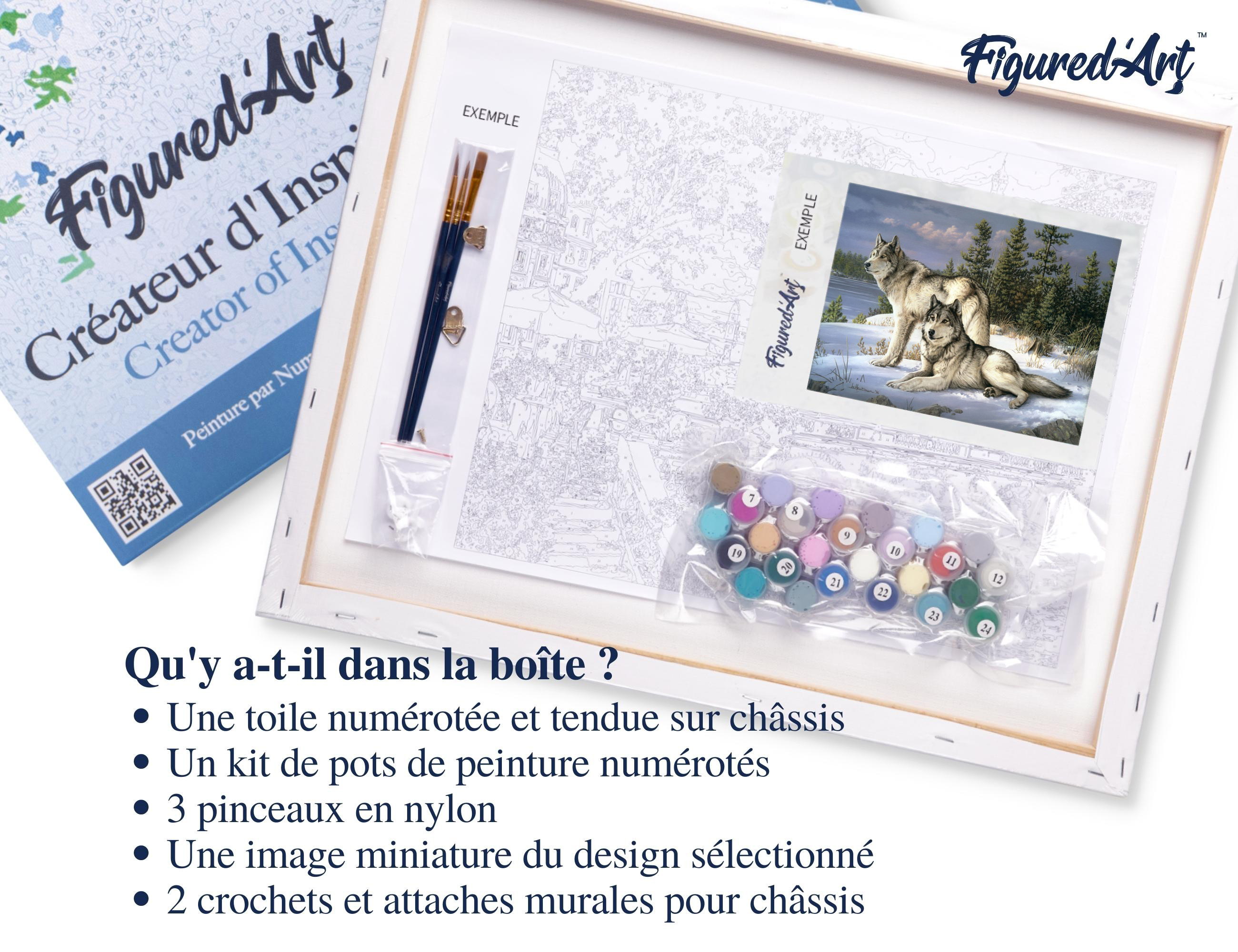 | Libellé | Peinture par Numéro Figured'Art avec Cadre - Couple de loups - Kit de Loisir Créatif DIY Numéro d'Art Complet - 40x50cm toile tendue sur châssis |