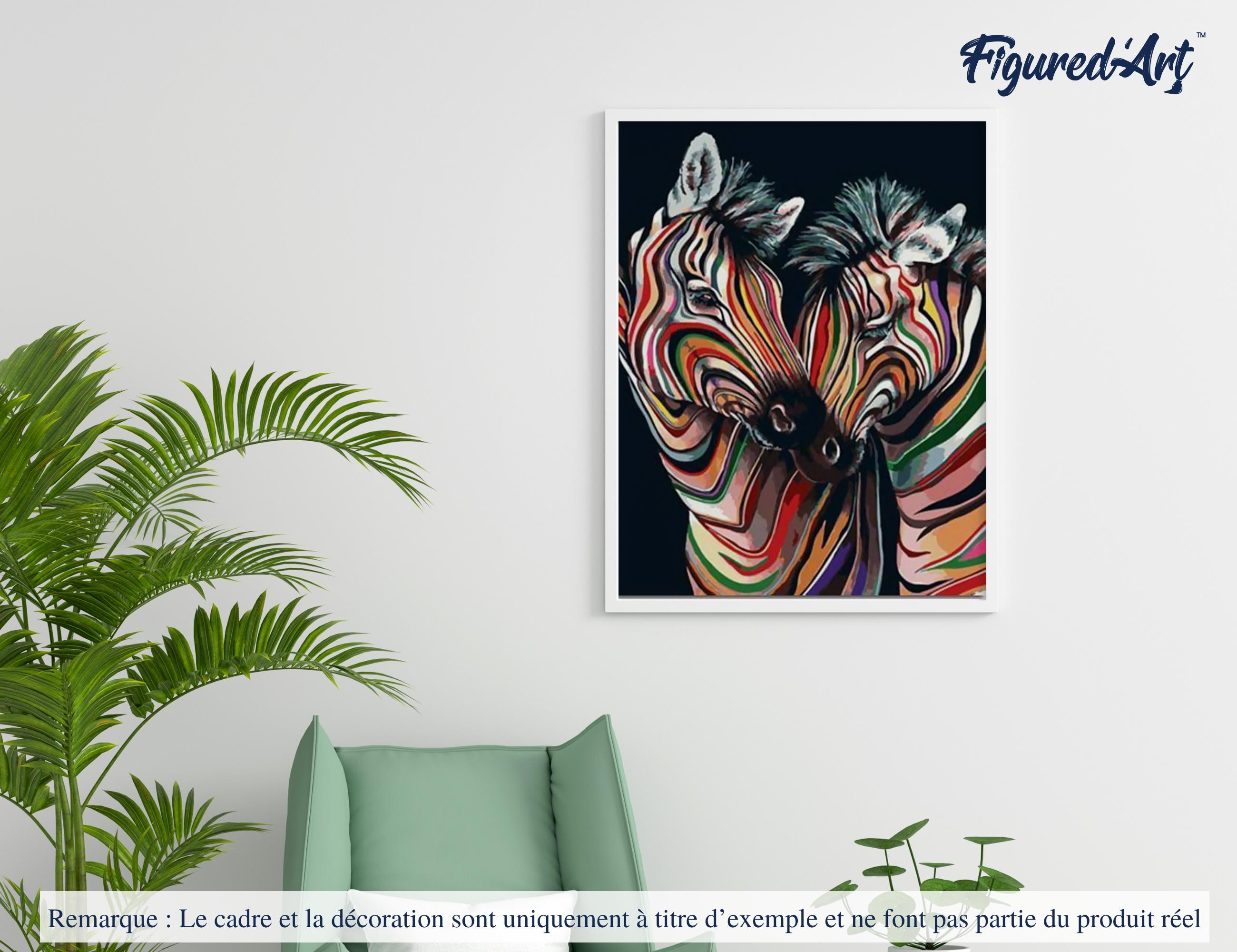 Peinture par Numéro Figured'Art avec Cadre - Couple de Zèbres colorés - Kit de Loisir Créatif DIY Numéro