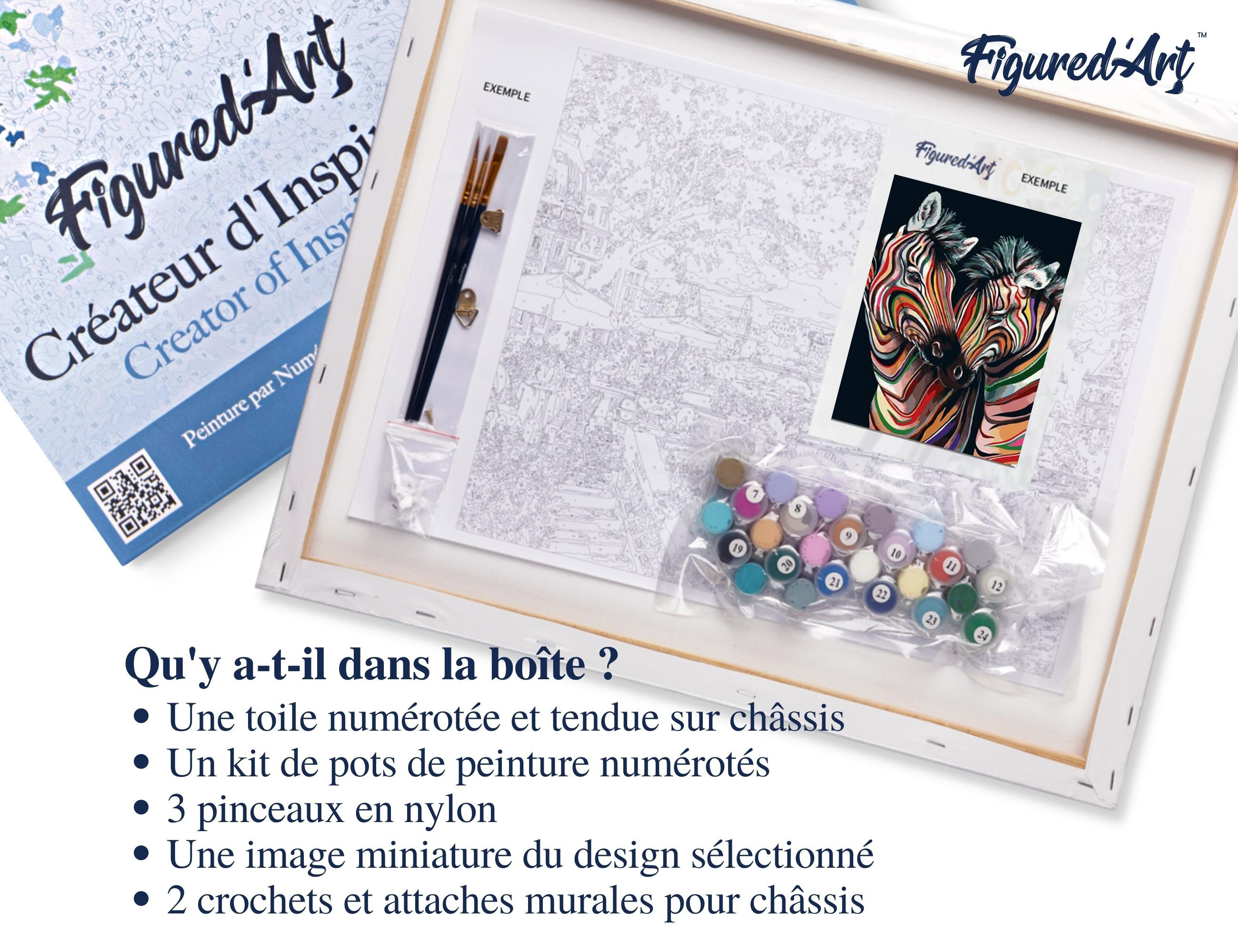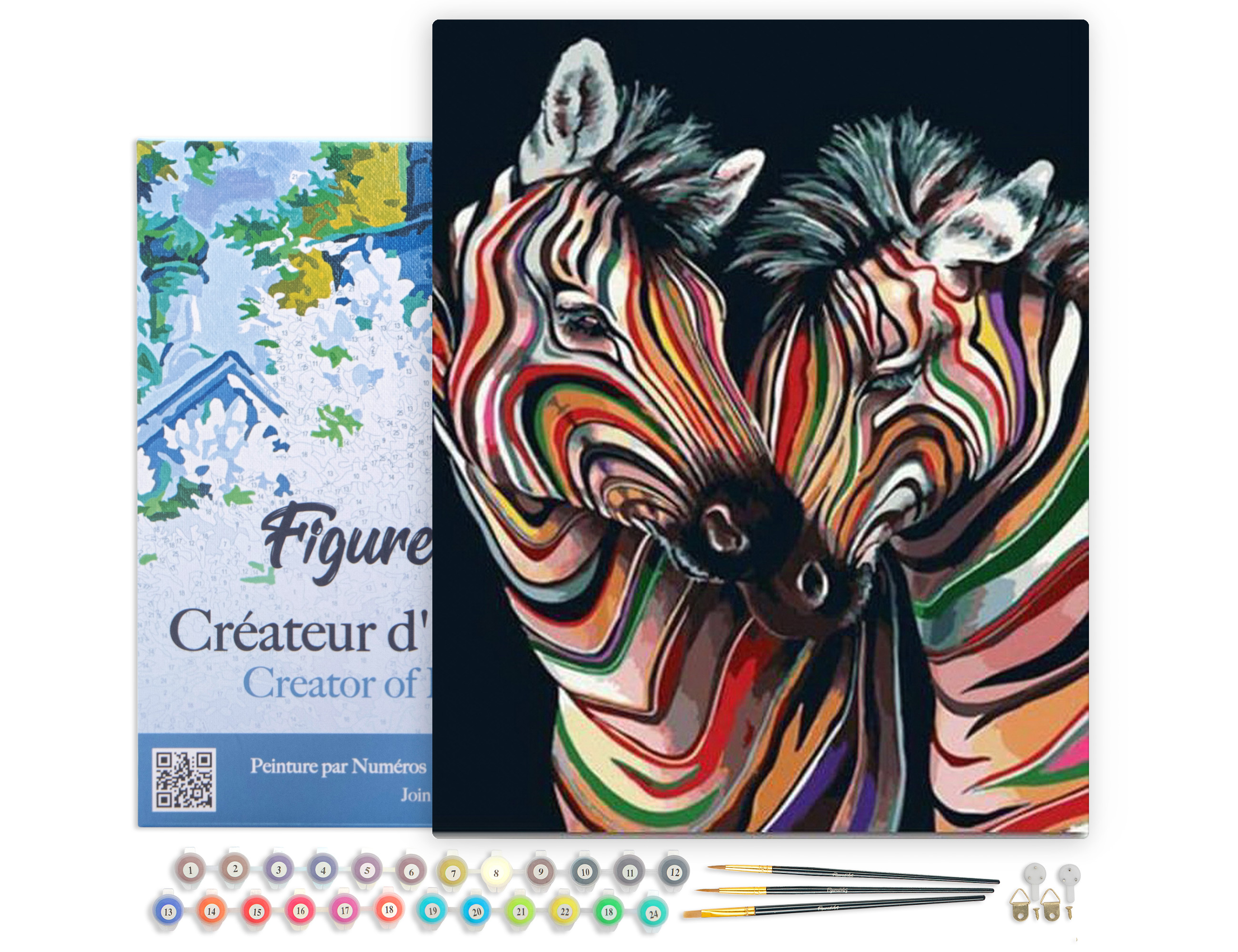 | Libellé | Peinture par Numéro Figured'Art avec Cadre - Couple de Zèbres colorés - Kit de Loisir Créatif DIY Numéro d'Art - 40x50cm toile tendue sur châssis |