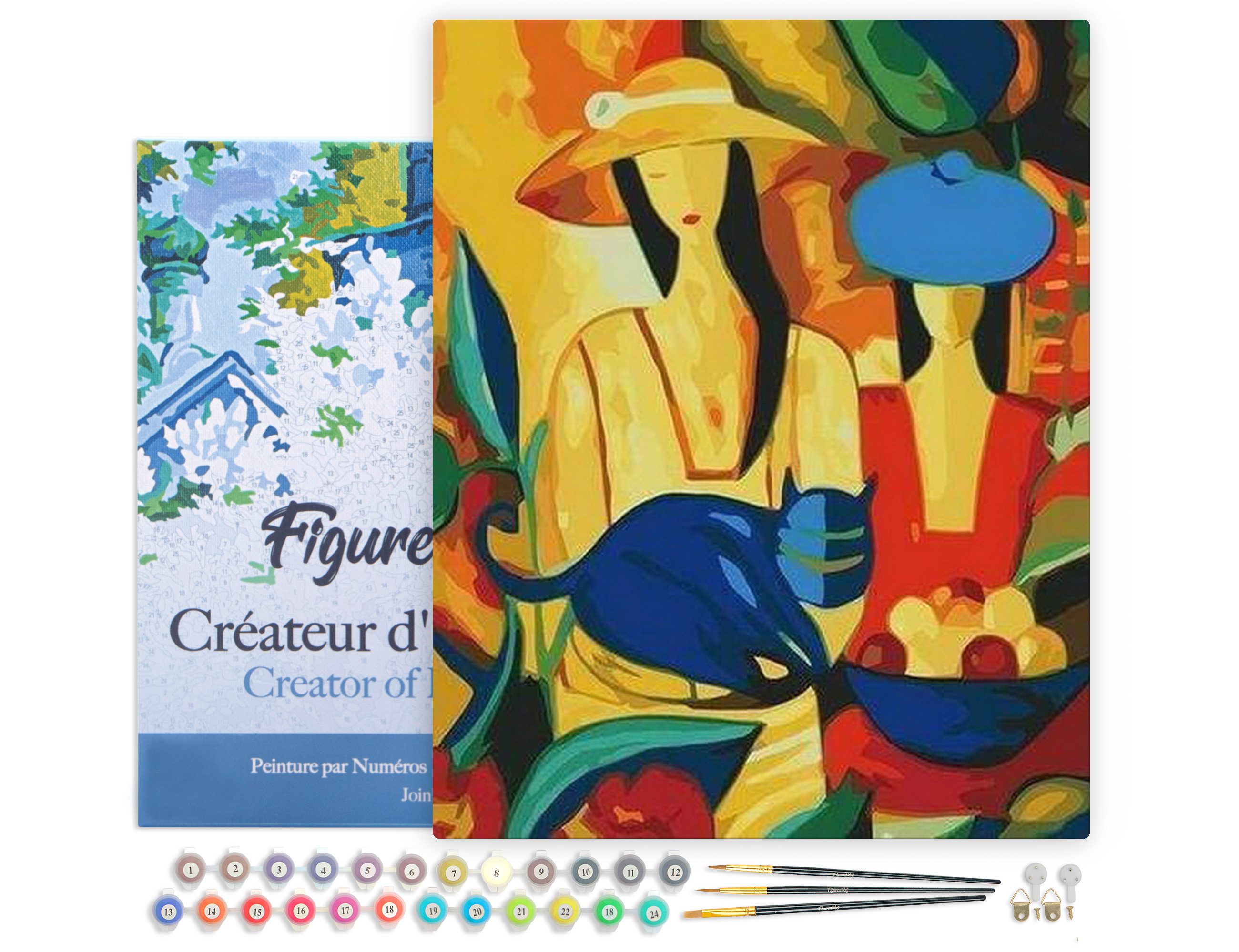 | Libellé | Peinture par Numéro Figured'Art avec Cadre - Femmes et Chat bleu - Kit de Loisir Créatif DIY Numéro d'Art Complet - 40x50cm toile tendue sur châssis |