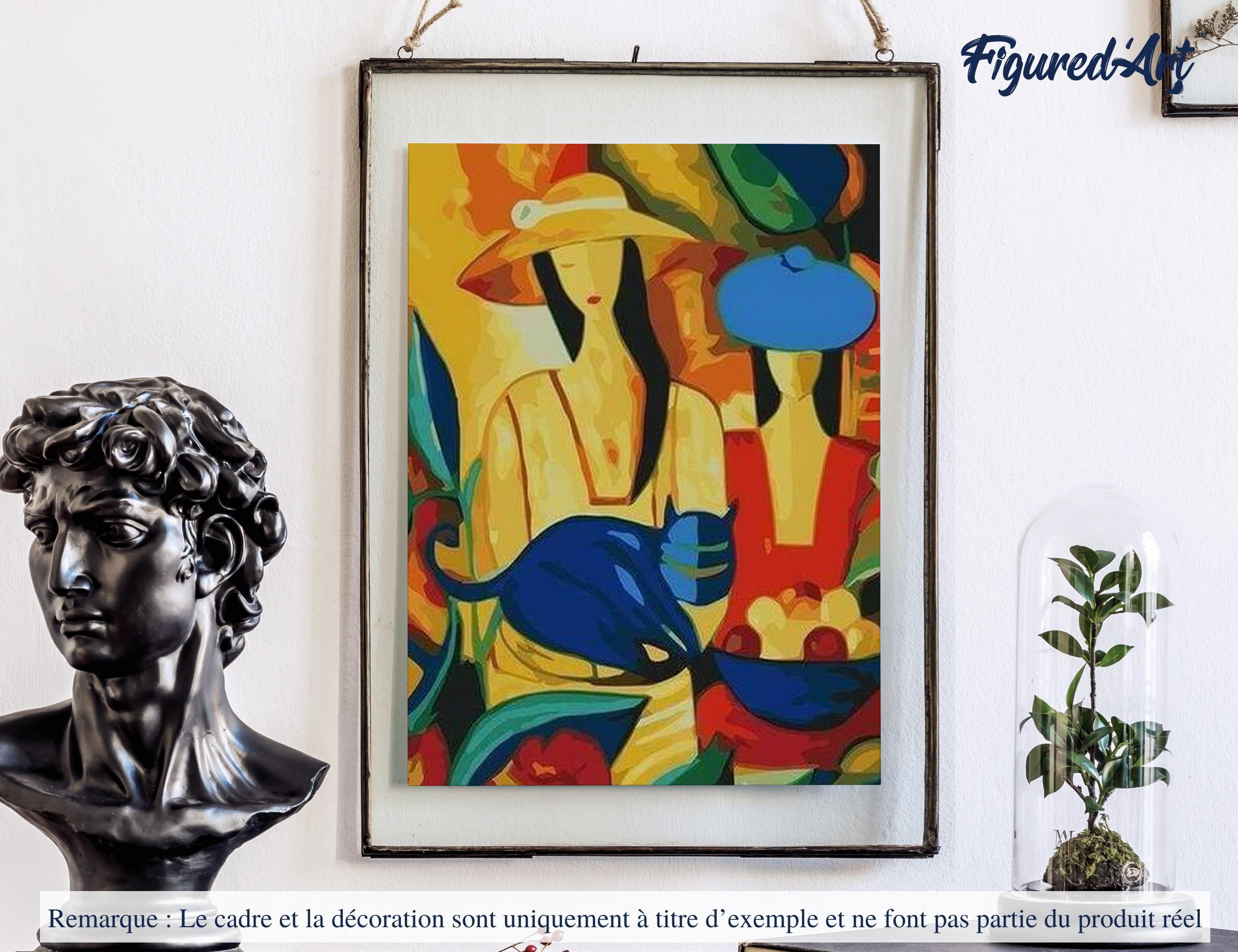 Peinture par Numéro Figured'Art avec Cadre - Femmes et Chat bleu - Kit de Loisir Créatif DIY Numéro d'Art