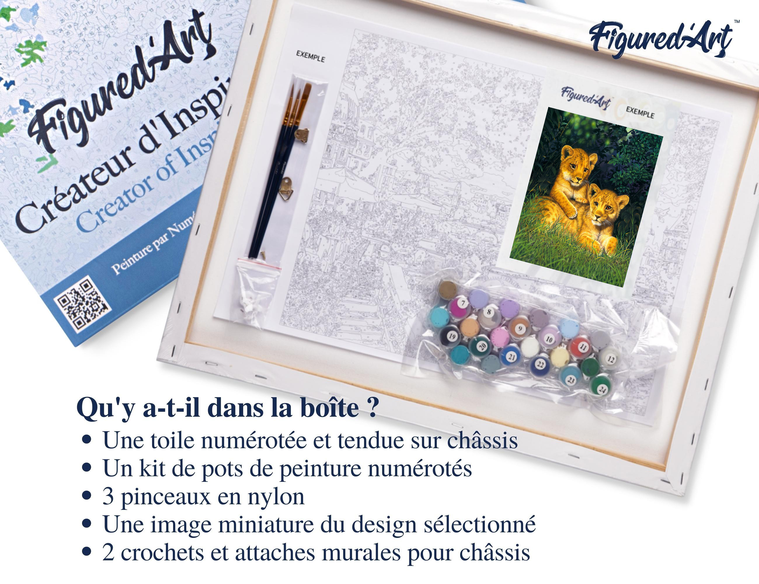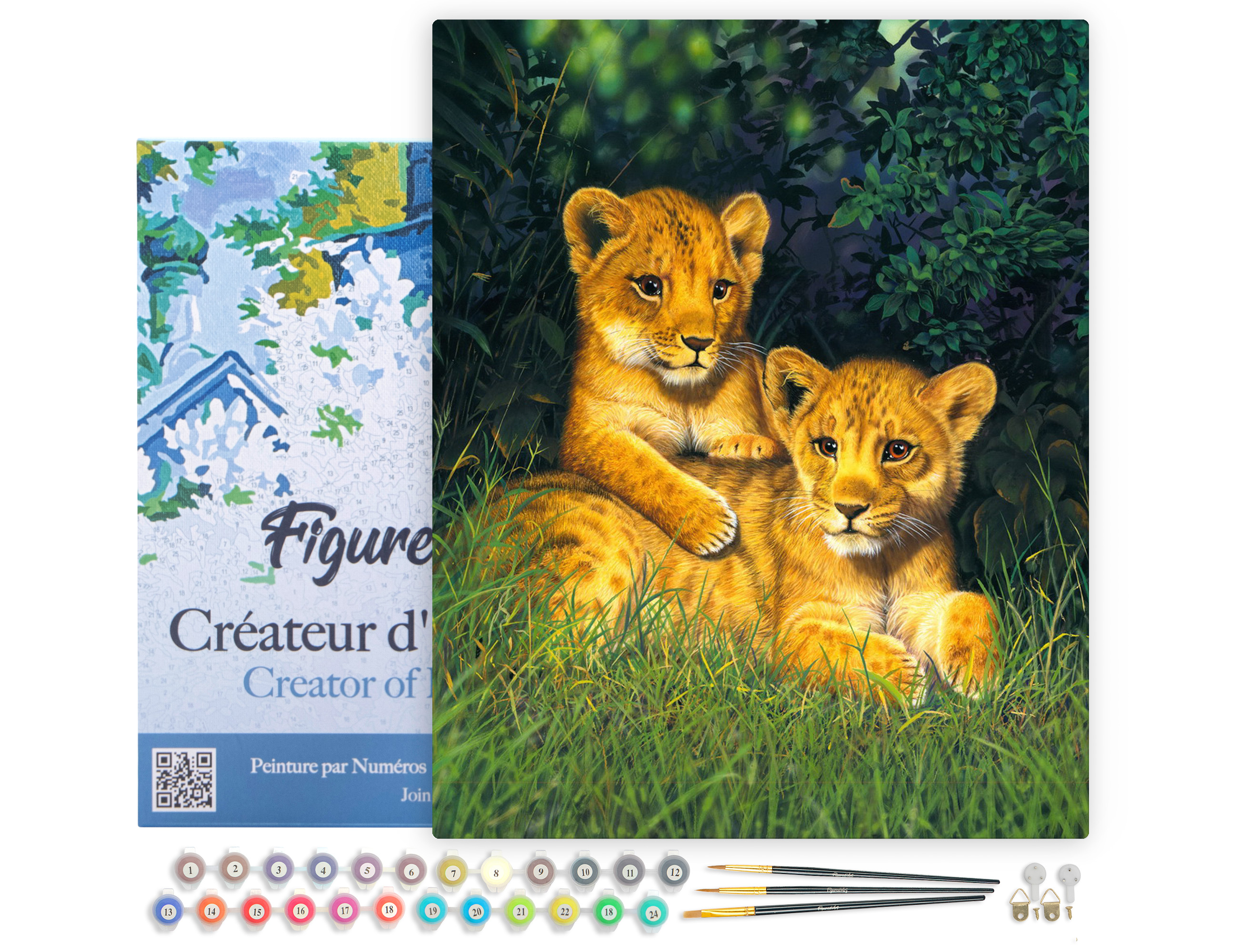 | Libellé | Peinture par Numéro Figured'Art avec Cadre - Lionceaux - Kit de Loisir Créatif DIY Numéro d'Art Complet - 40x50cm toile tendue sur châssis |