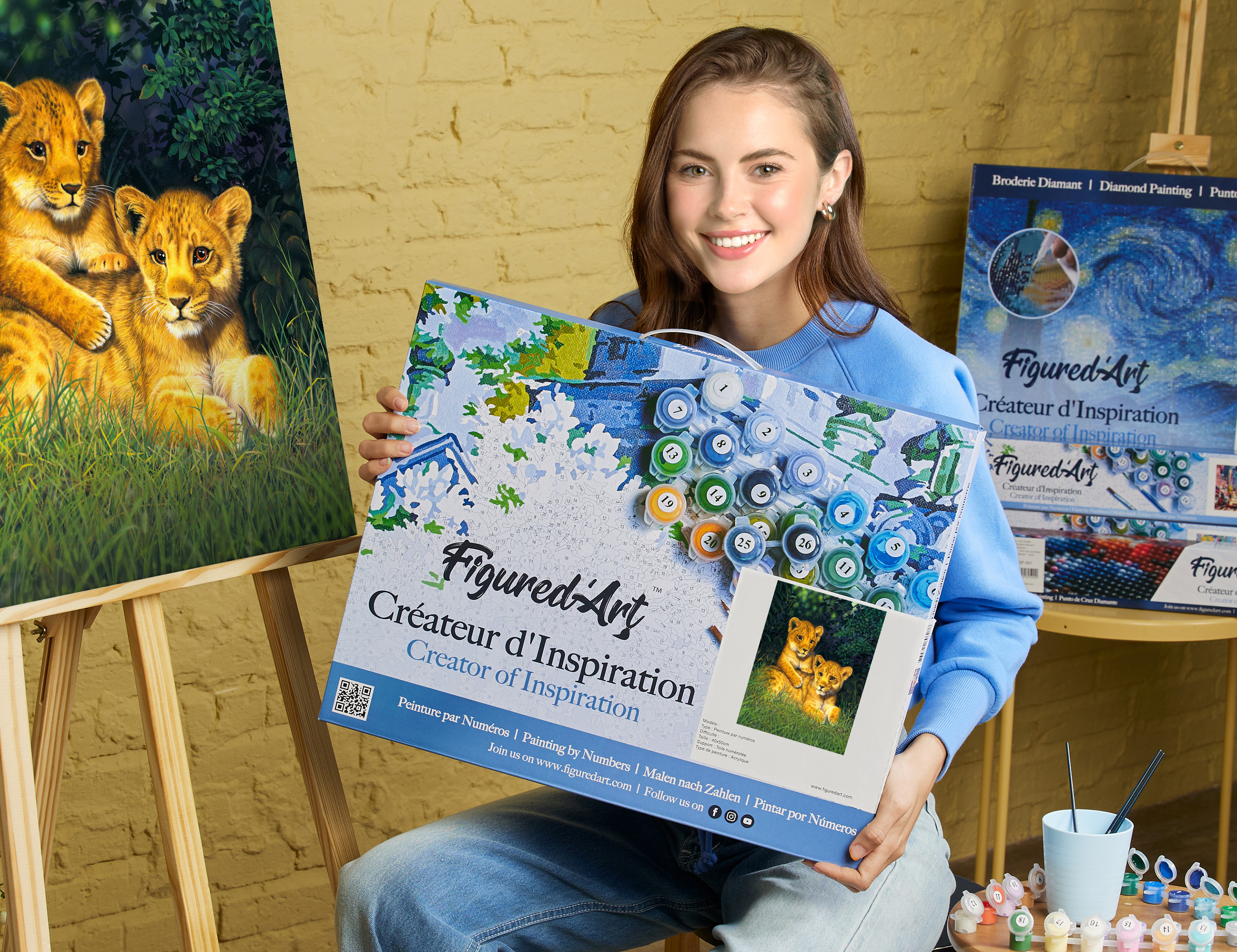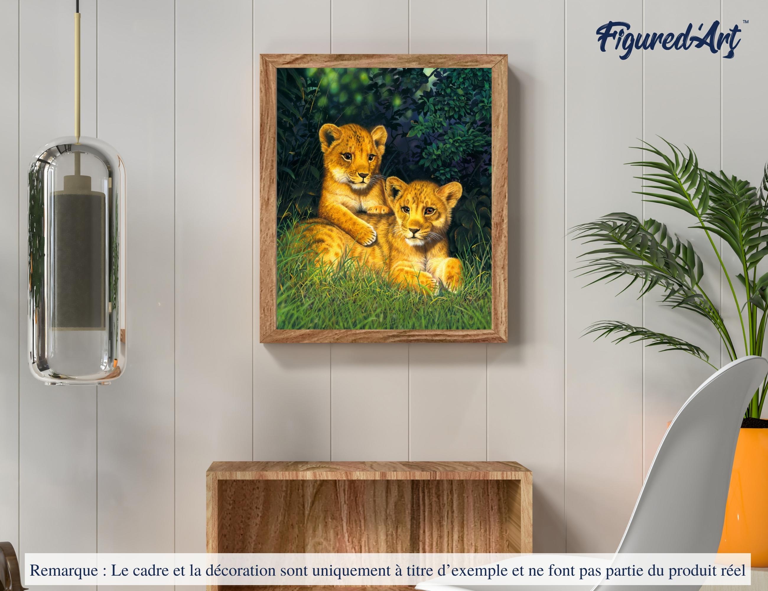 Peinture par Numéro Figured'Art avec Cadre - Lionceaux - Kit de Loisir Créatif DIY Numéro d'Art Complet -