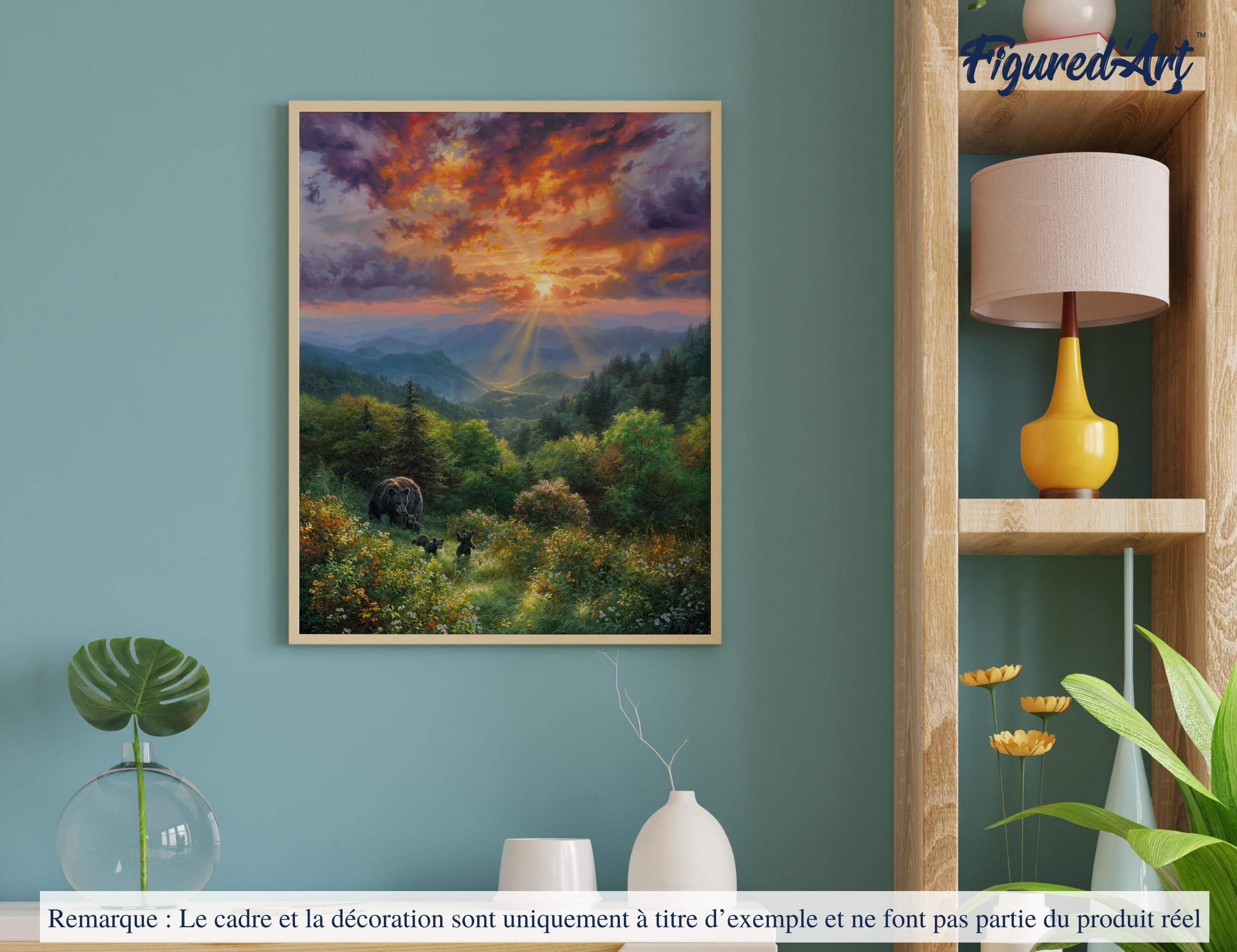 Peinture par Numéro Figured'Art avec Cadre - Ours et coucher de soleil - Kit de Loisir Créatif DIY Numéro