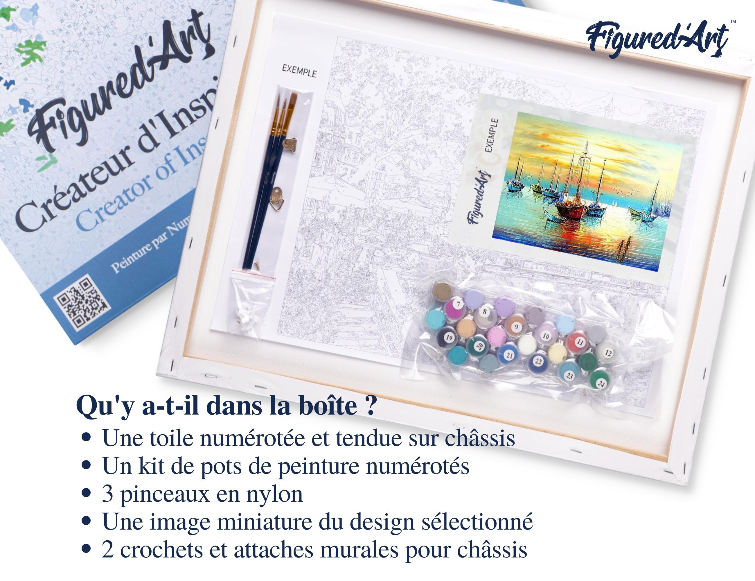 | Libellé | Peinture par Numéro Figured'Art avec Cadre - Voiliers au port - Kit de Loisir Créatif DIY Numéro d'Art Complet - 40x50cm toile tendue sur châssis |