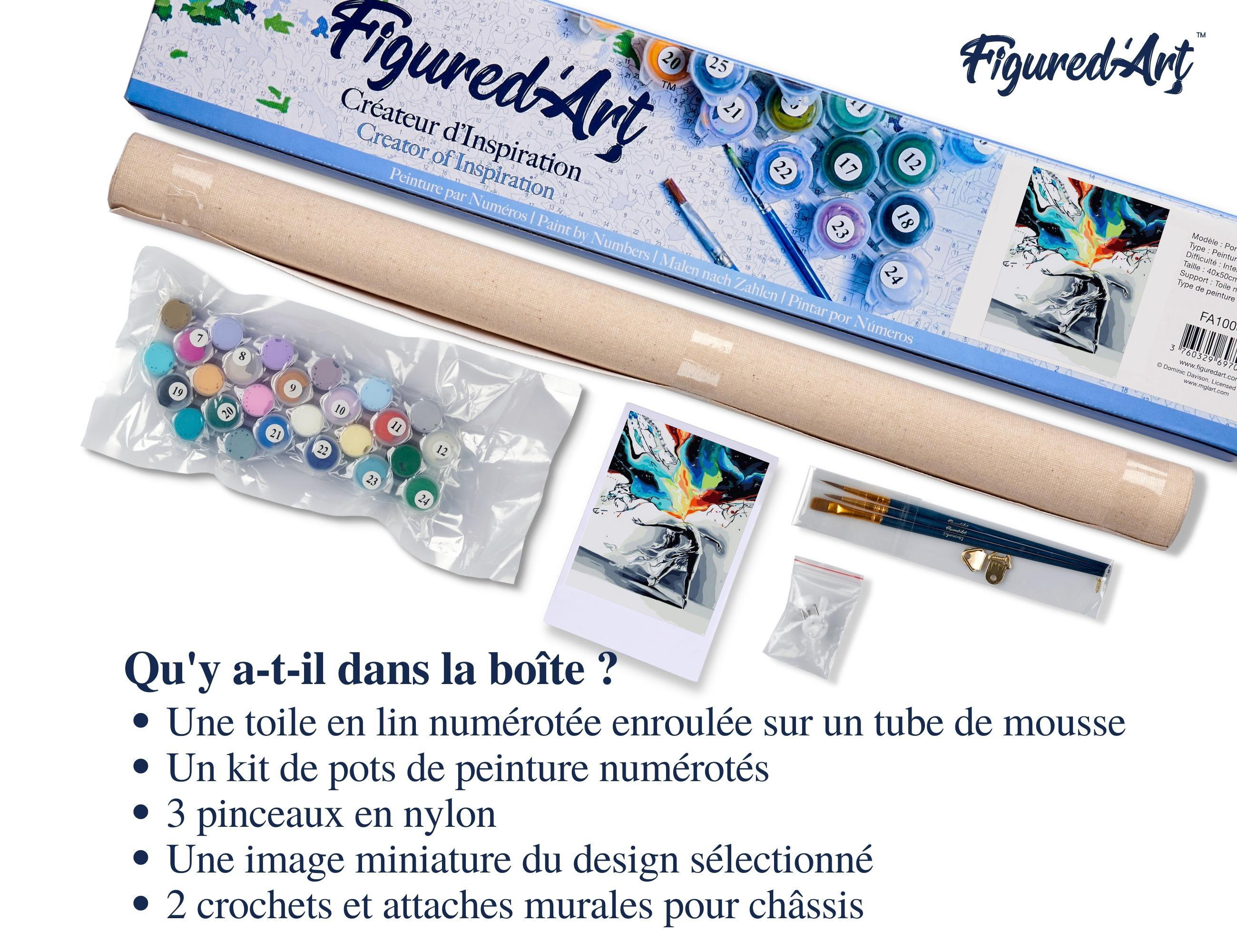 | Libellé | Peinture par Numéro Figured'Art - Explosion de couleurs - Kit de Loisir Créatif DIY Numéro d'Art Complet - 40x50cm sans châssis en bois |