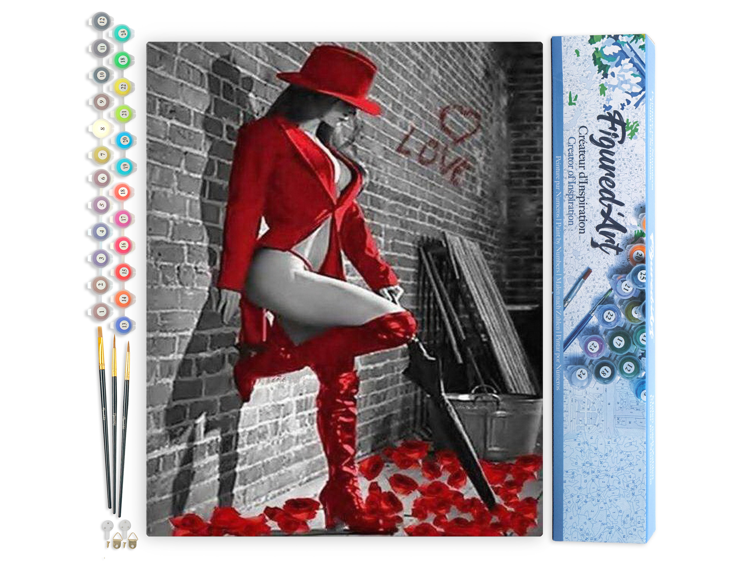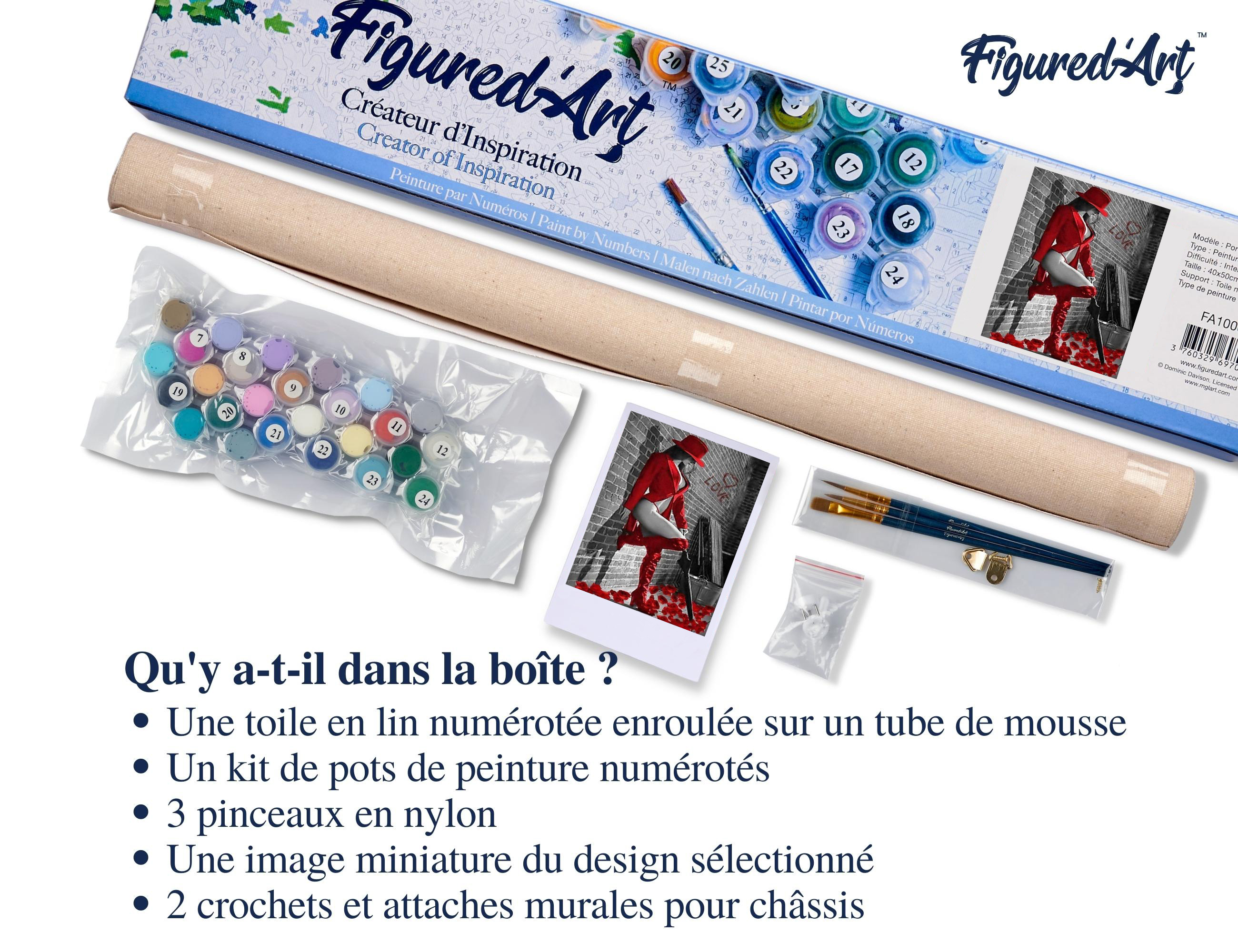 | Libellé | Peinture par Numéro Figured'Art - Femme sexy en Bottes de cuir rouge - Kit de Loisir Créatif DIY Numéro d'Art Complet - 40x50cm sans châssis en bois |