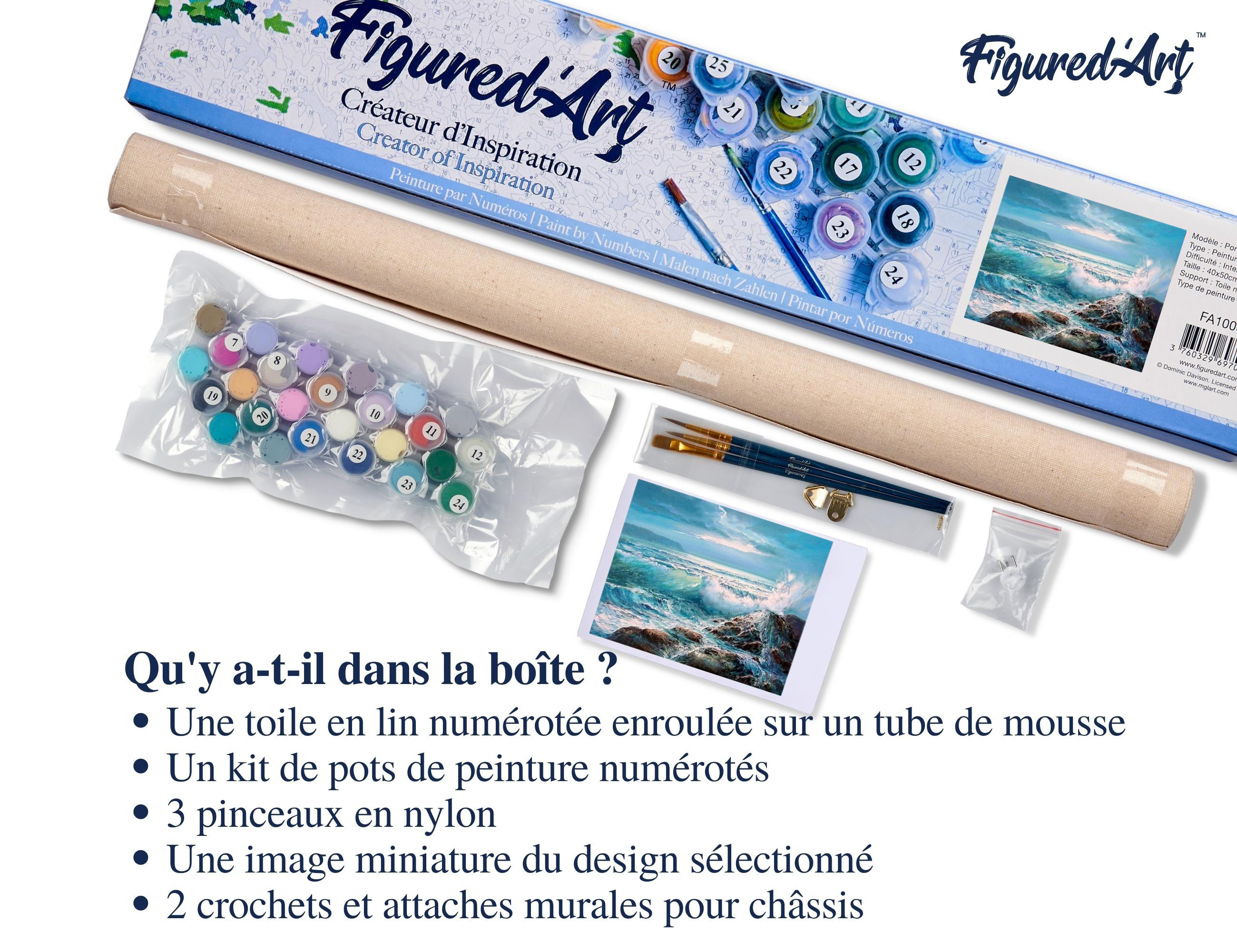 | Libellé | Peinture par Numéro Figured'Art - Les Vagues - Kit de Loisir Créatif DIY Numéro d'Art Complet - 40x50cm sans châssis en bois |