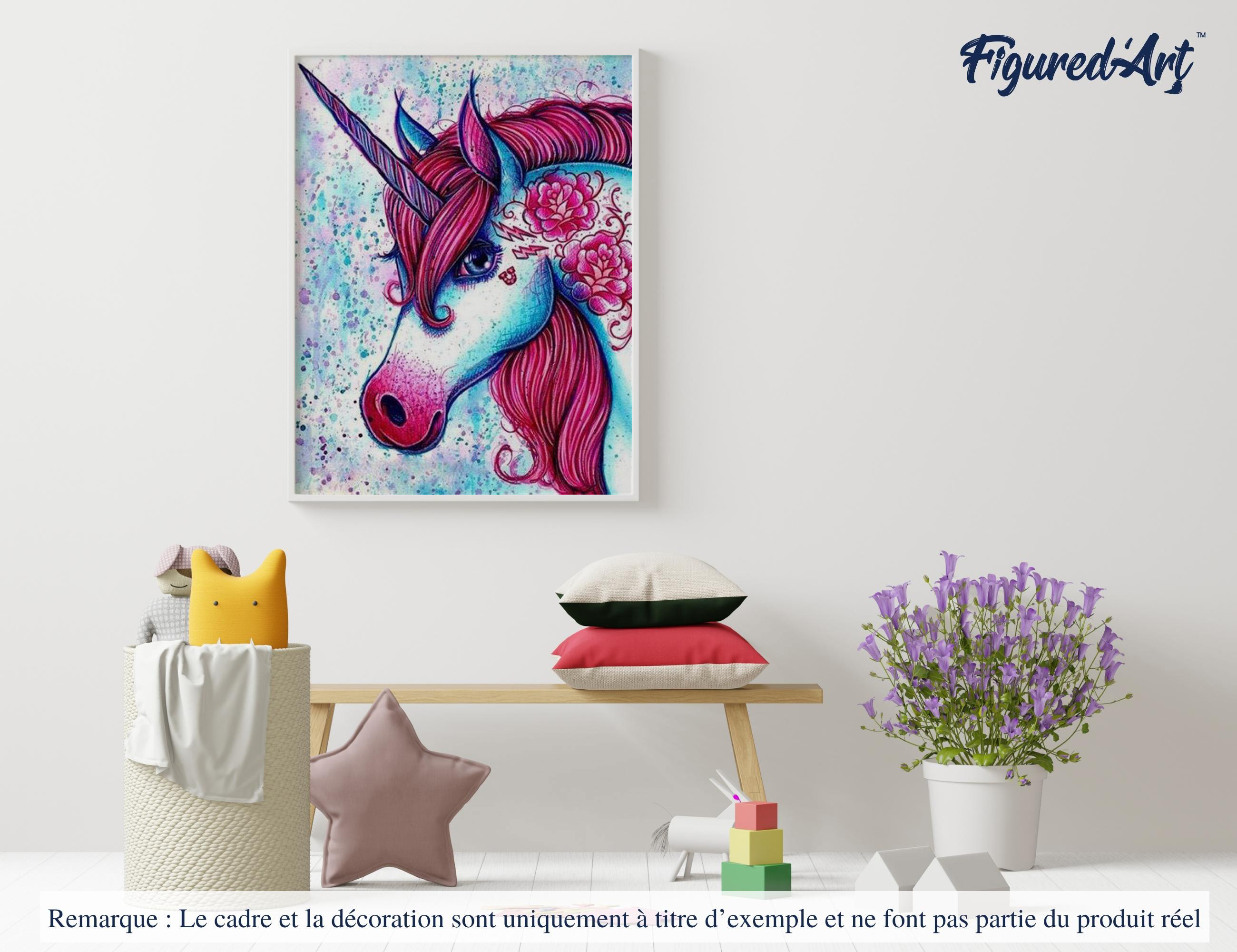 Peinture par Numéro Figured'Art - Licorne rouge et bleu - Kit de Loisir Créatif DIY Numéro d'Art Complet