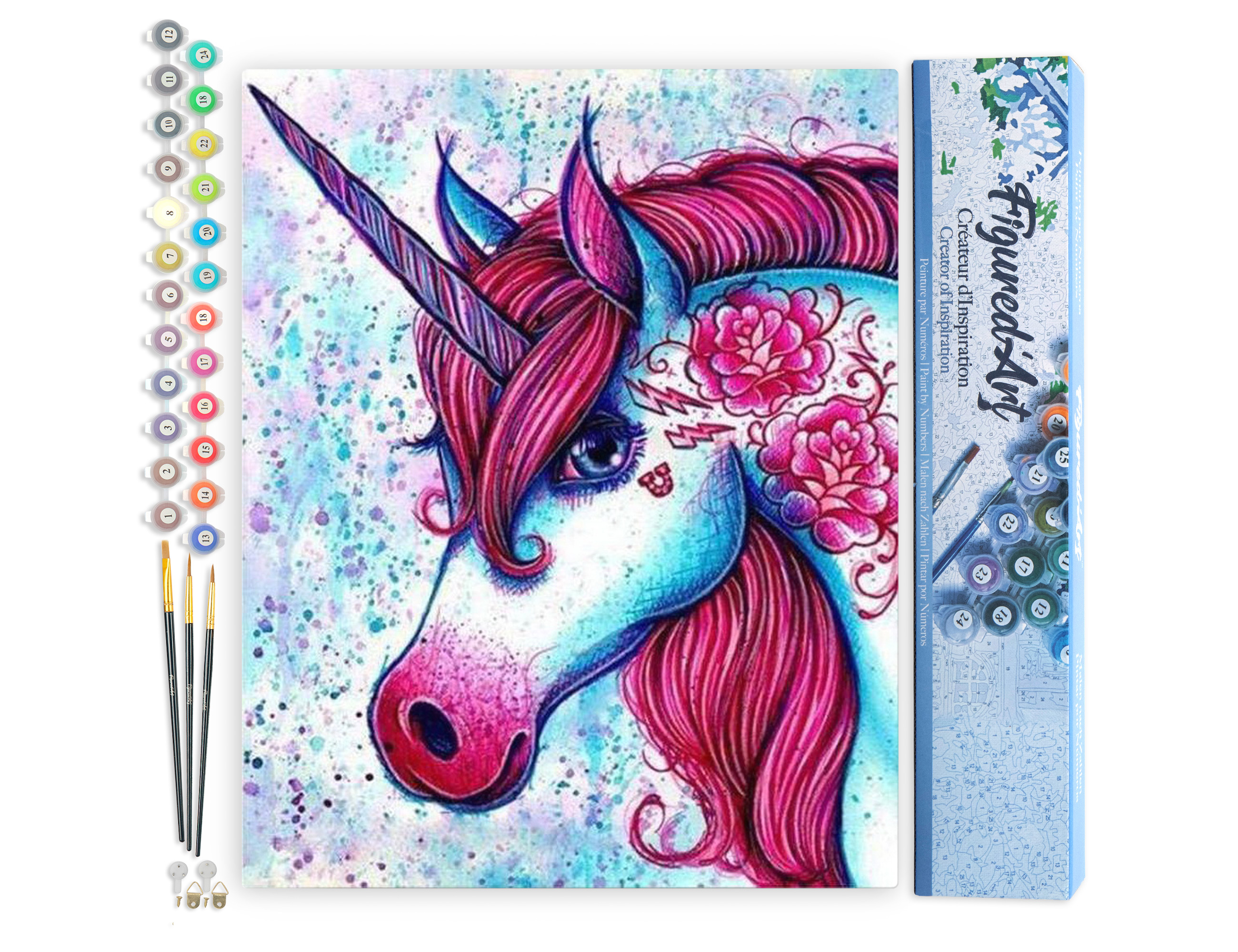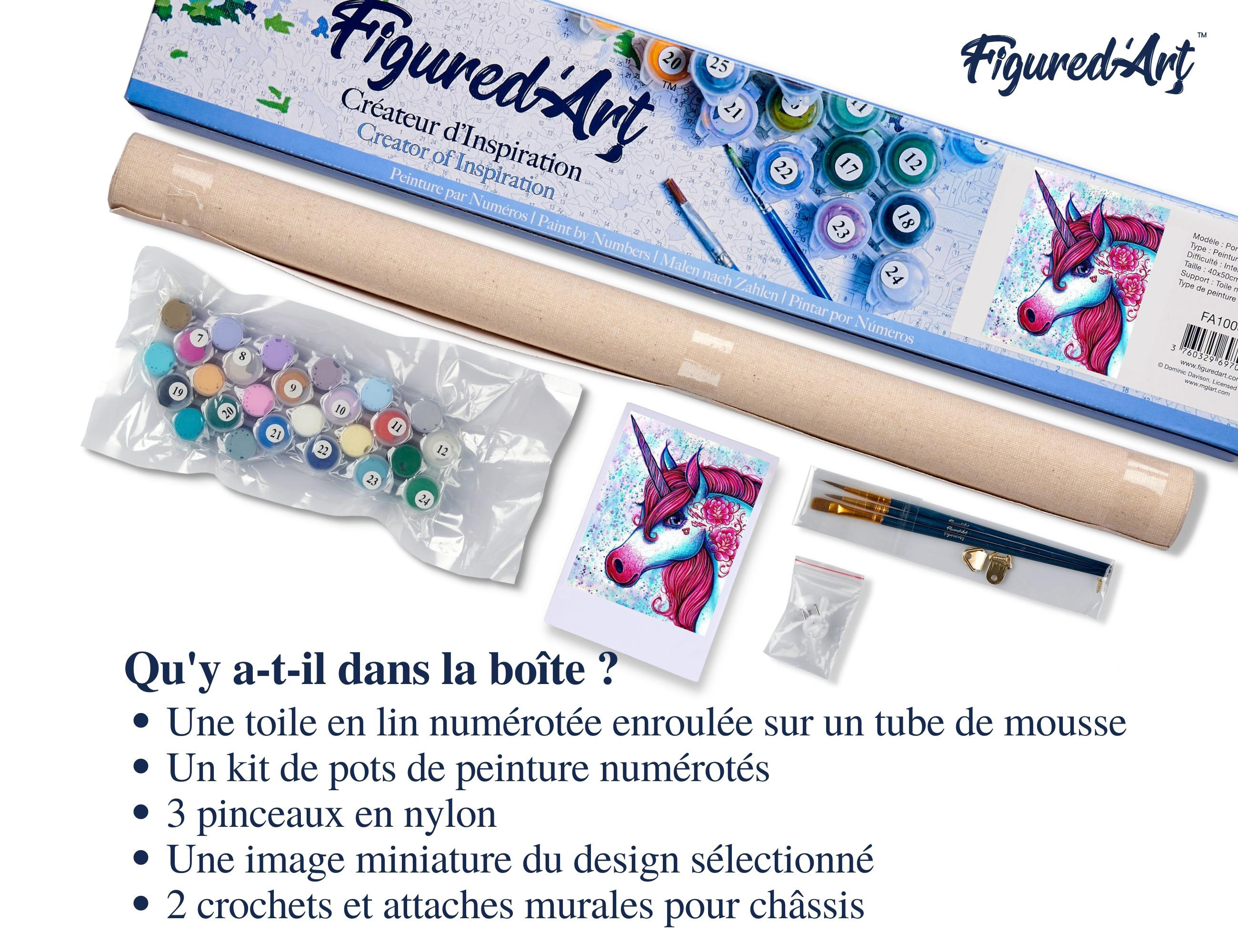 | Libellé | Peinture par Numéro Figured'Art - Licorne rouge et bleu - Kit de Loisir Créatif DIY Numéro d'Art Complet - 40x50cm sans châssis en bois |