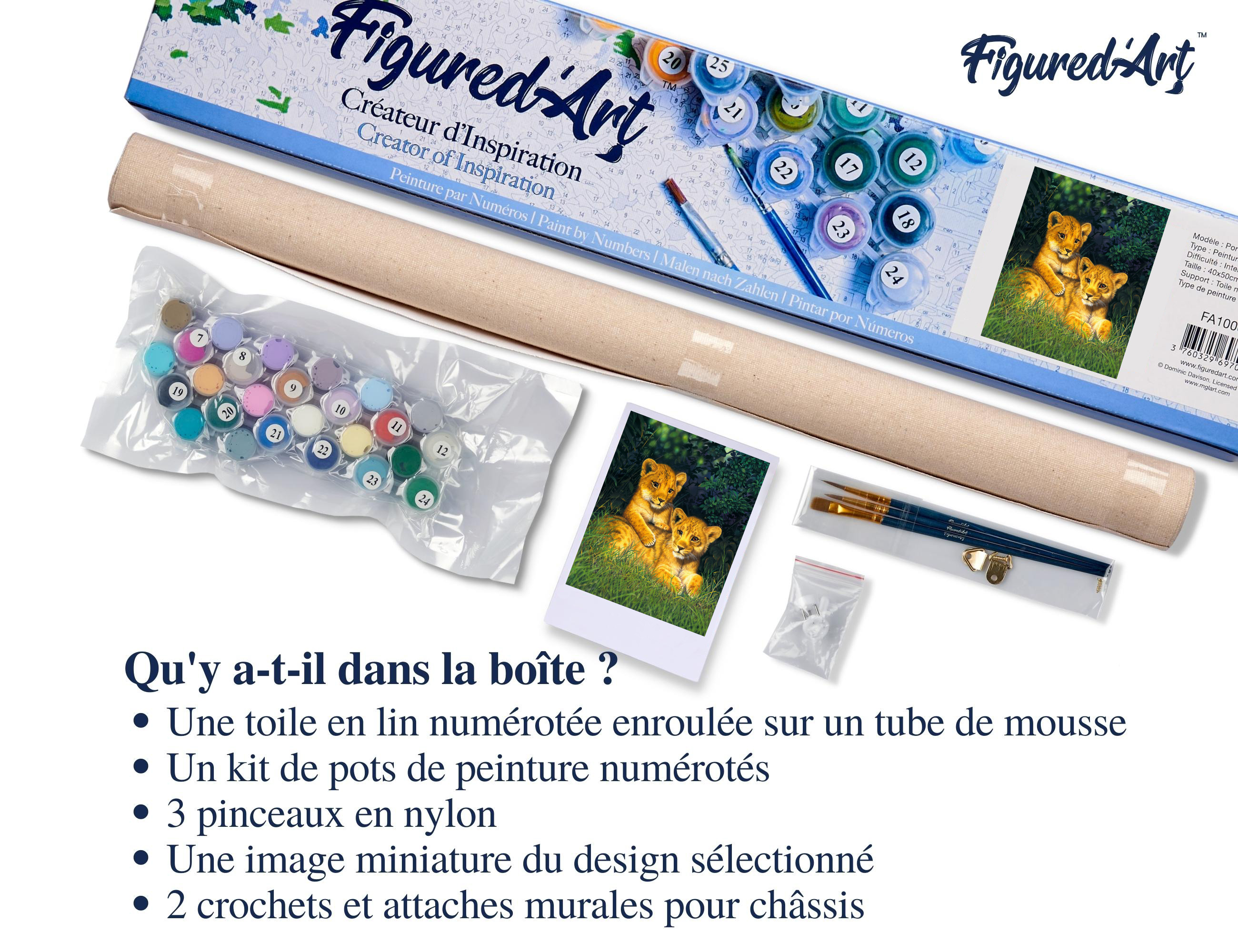| Libellé | Peinture par Numéro Figured'Art - Lionceaux - Kit de Loisir Créatif DIY Numéro d'Art Complet - 40x50cm sans châssis en bois |