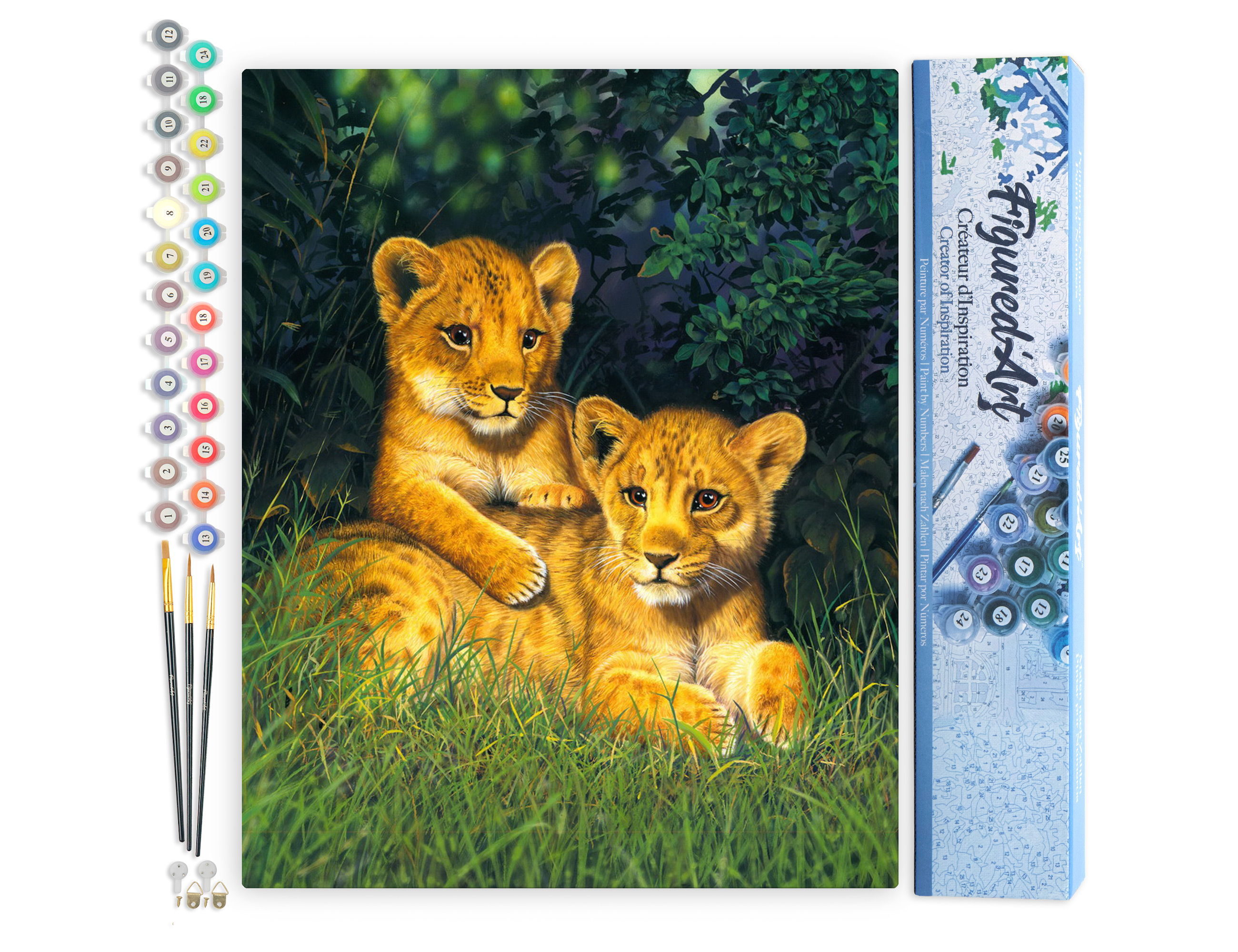 Peinture par Numéro Figured'Art - Lionceaux - Kit de Loisir Créatif DIY Numéro d'Art Complet - 40x50cm sa