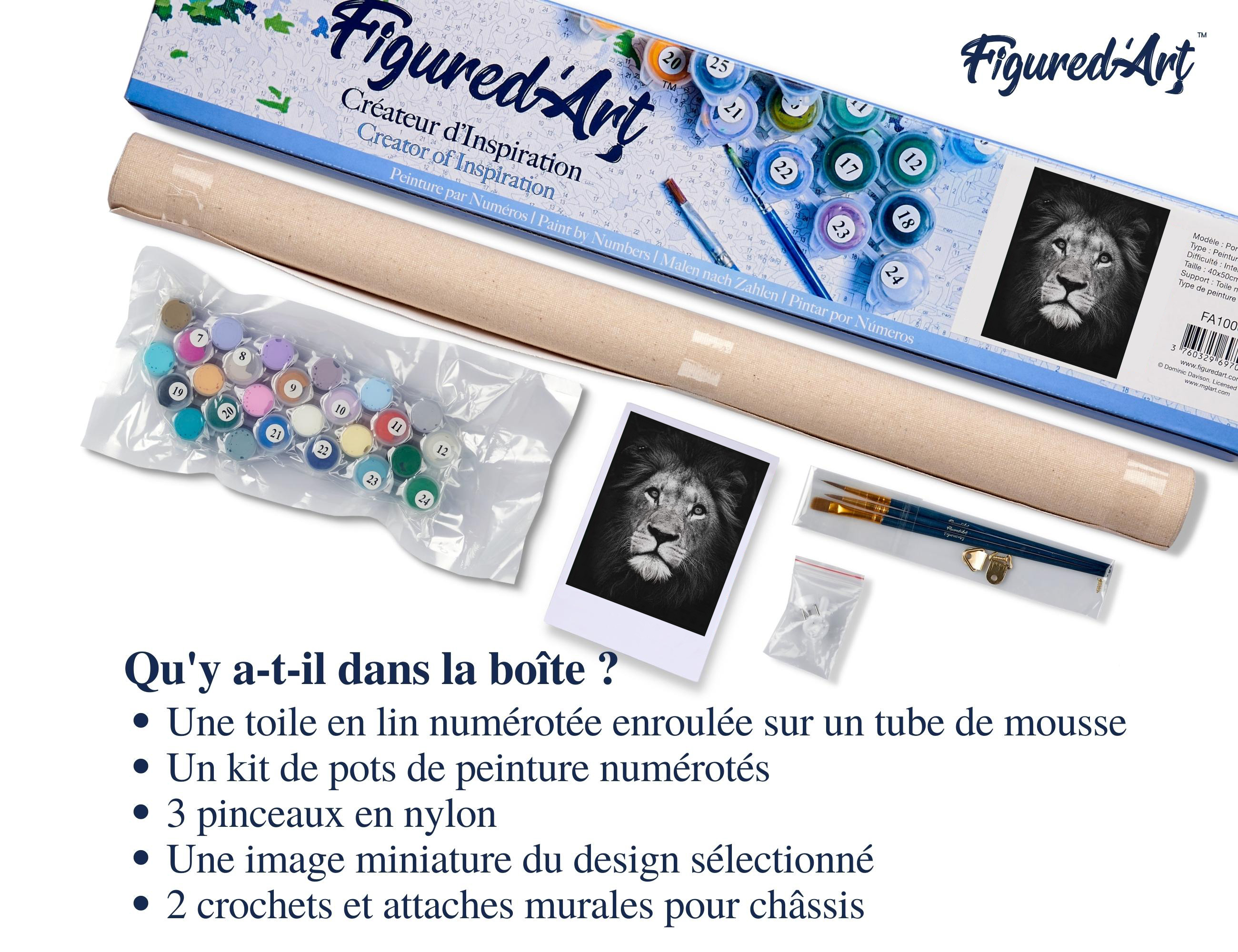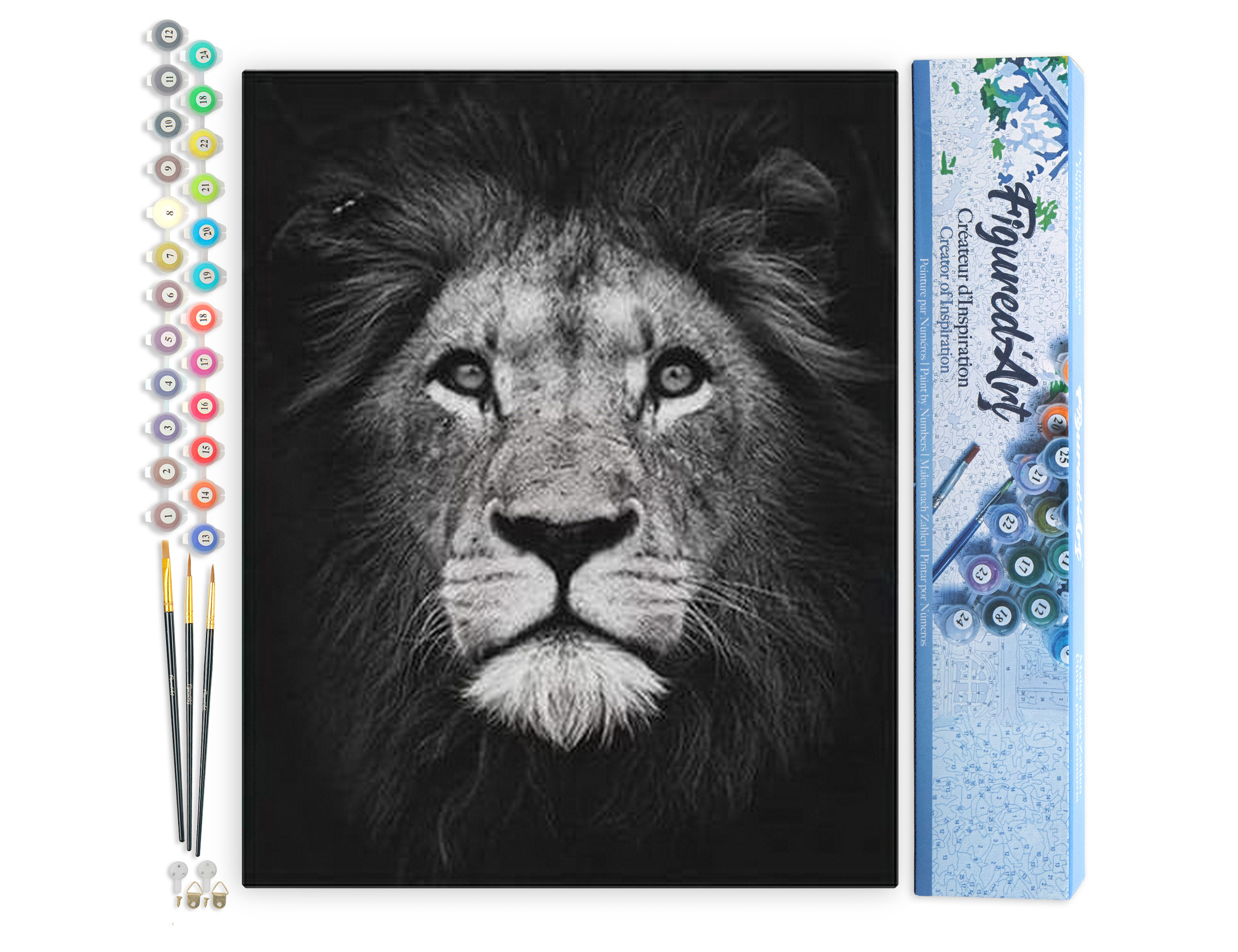 | Libellé | Peinture par Numéro Figured'Art - Tête de lion en noir et blanc - Kit de Loisir Créatif DIY Numéro d'Art Complet - 40x50cm sans châssis en bois |