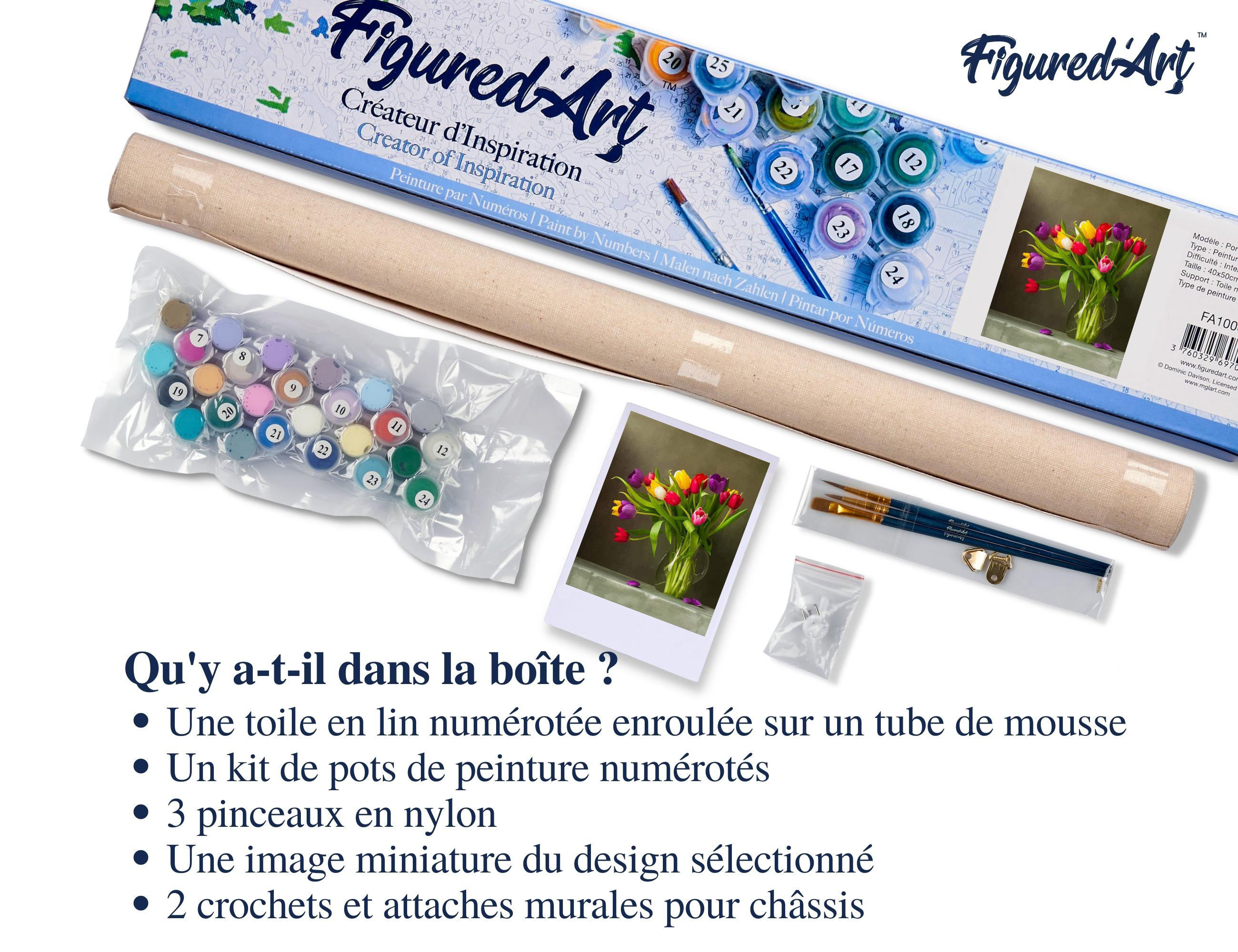 | Libellé | Peinture par Numéro Figured'Art - Tulipes multicolores - Kit de Loisir Créatif DIY Numéro d'Art Complet - 40x50cm sans châssis en bois |