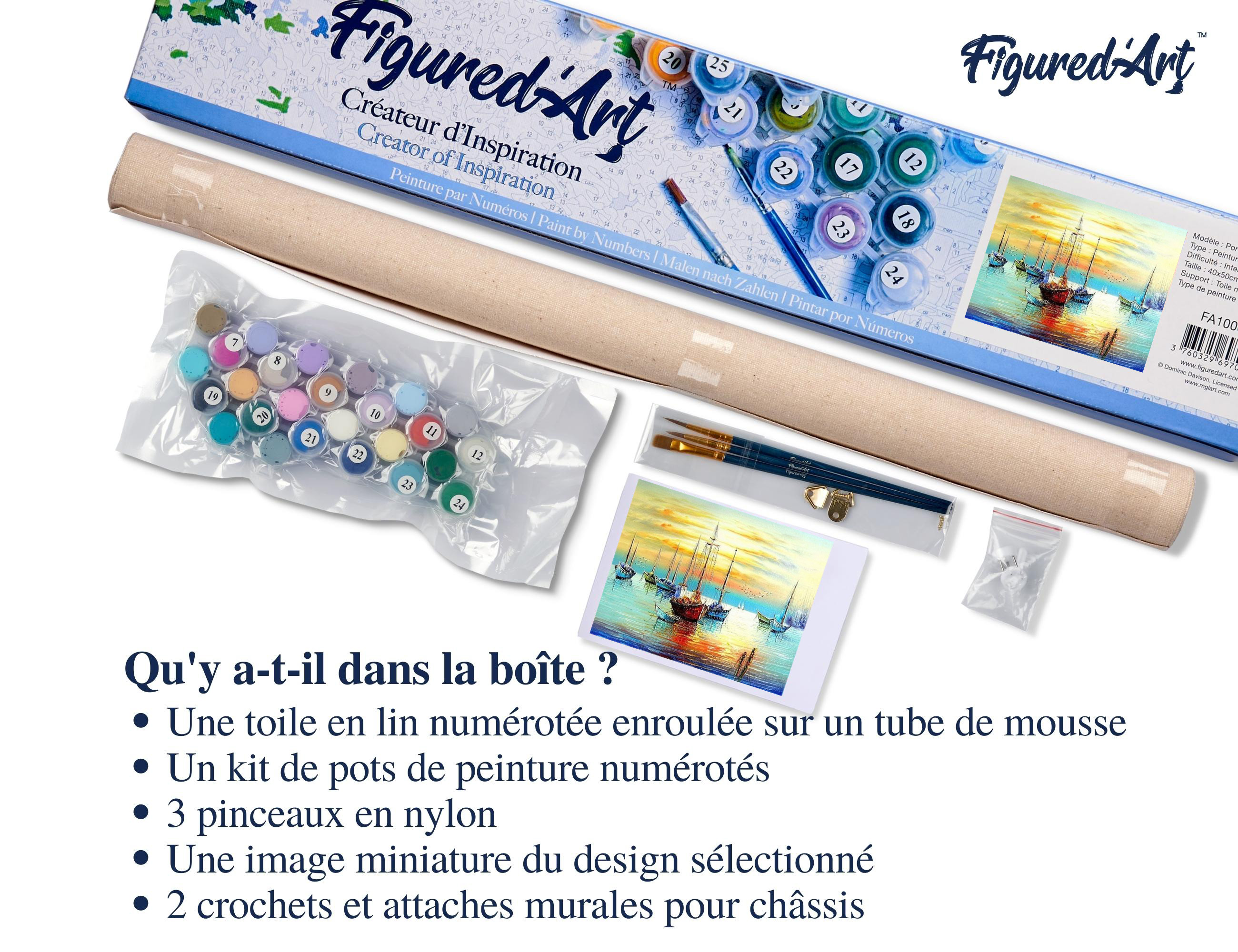| Libellé | Peinture par Numéro Figured'Art - Voiliers au port - Kit de Loisir Créatif DIY Numéro d'Art Complet - 40x50cm sans châssis en bois |