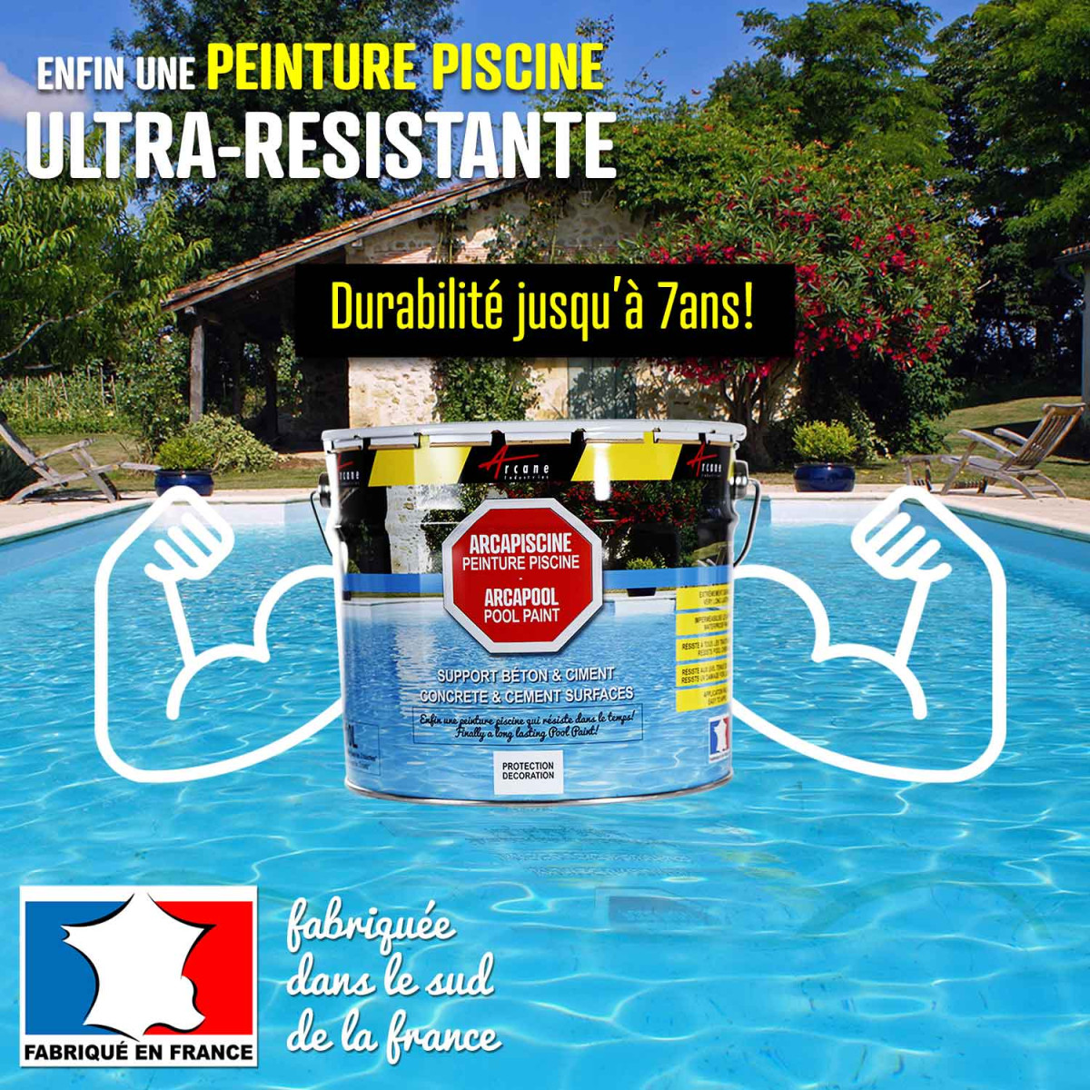 Peinture piscine béton et bassins est une peinture d'imperméabilisation et de décoration des piscines et bassins. Proposé dans de nombreuses couleurs: gris, noir, vert, jaune, bleu, blanc. ARCAPISCINE est une peinture hydrofuge pour piscine et constitue la solution au meilleur prix pour rénover votre bassin. Résistante, compatible avec un traitement au sel, applicable sur silico marbreux.