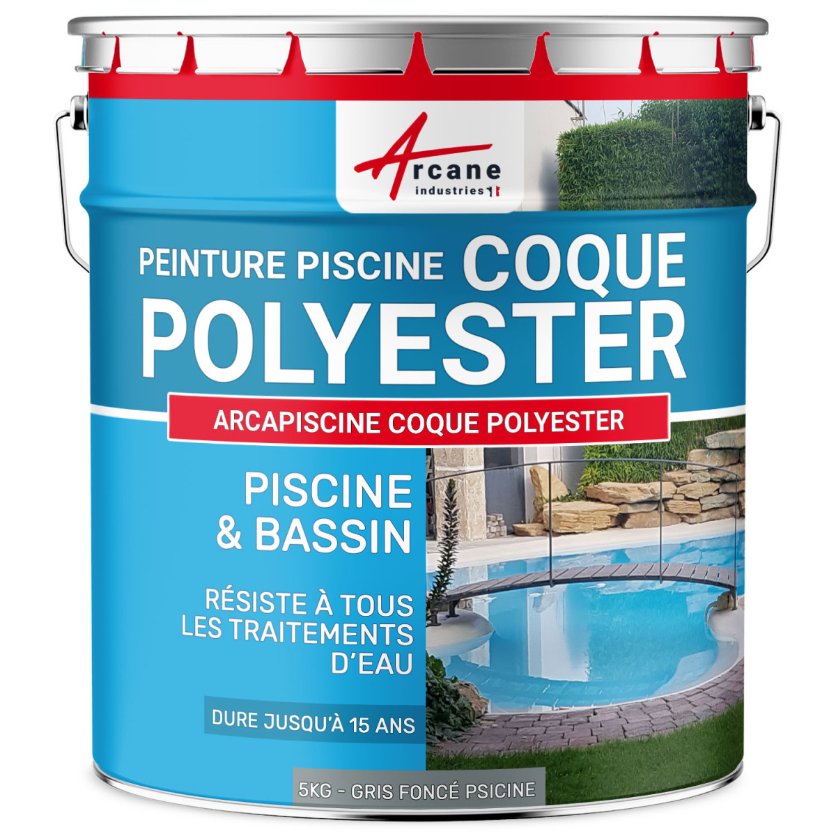| Libellé | Peinture Piscine pour coque polyester Arcapiscine - 5 kg (jusqu'à 15m² pour 2 couches) Bleu Clair - ARCANE INDUSTRIES |