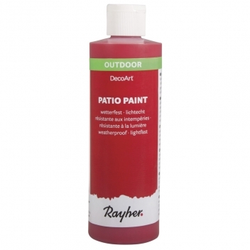 Peinture pour l'extérieur Patio Paint Rouge cerise 236ml;La peinture "Patio paint" est une peinture acrylique extrêmement résistante aux intempéries et à la lumière (à base d’eau). Elle est idéale sur le béton, toutes sortes de...;Peinture pour l'extérieur Patio Paint Rouge cerise 236ml;La peinture "Patio paint" est une peinture acrylique extrêmement résistante aux intempéries et à la lumière (à base d’eau). Elle est idéale sur le béton, toutes sortes de statuettes de jardin, des murs, des briques, de la terre cuite, bois et pierre.;Il n'est pas nécessaire de rajouter de couche protectrice.