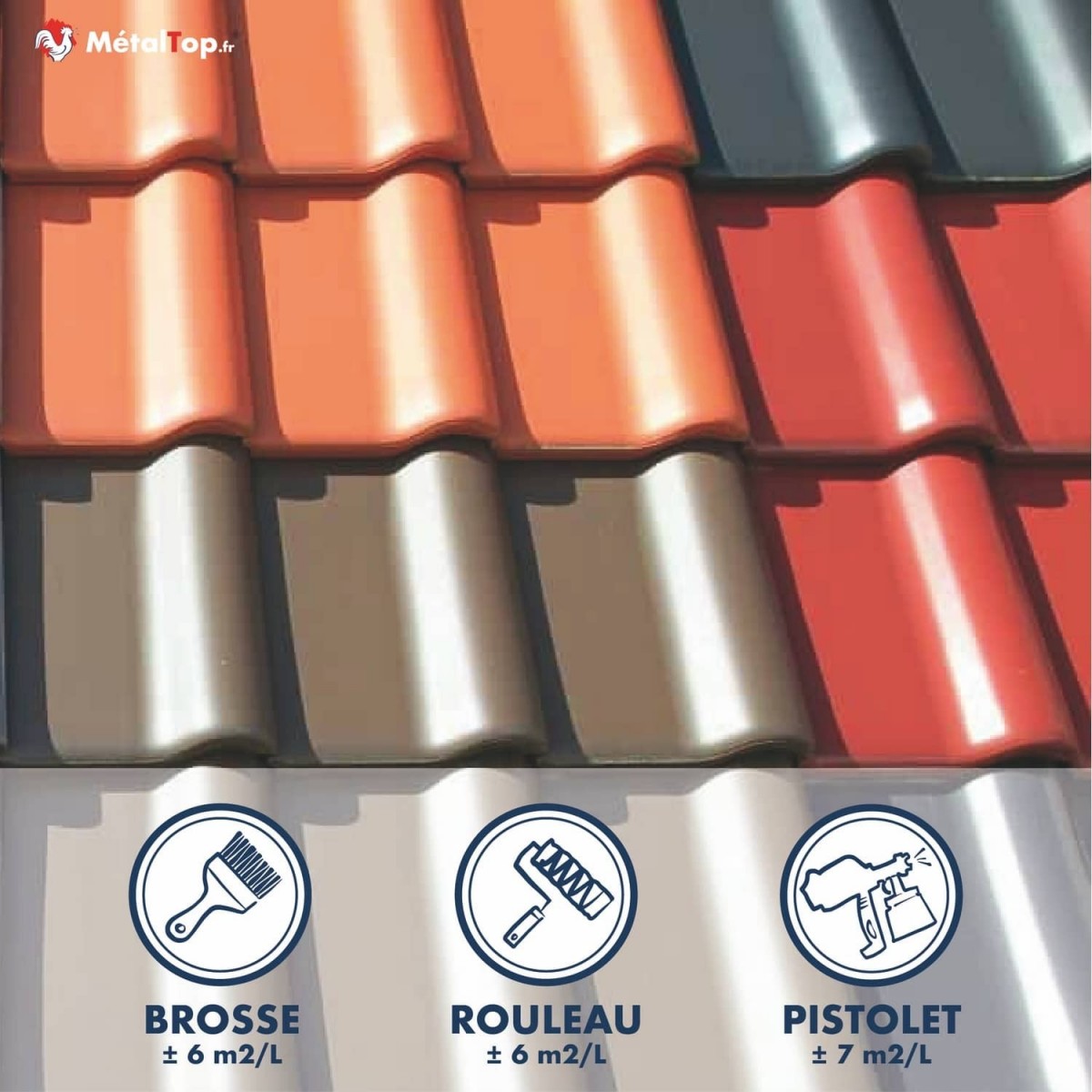 Excellent pouvoir couvrant - Facile d'applicationPeinture toiture mat velouté pour vos toits en tuile, ardoise, ciment, fibrociment, acier, tôle.