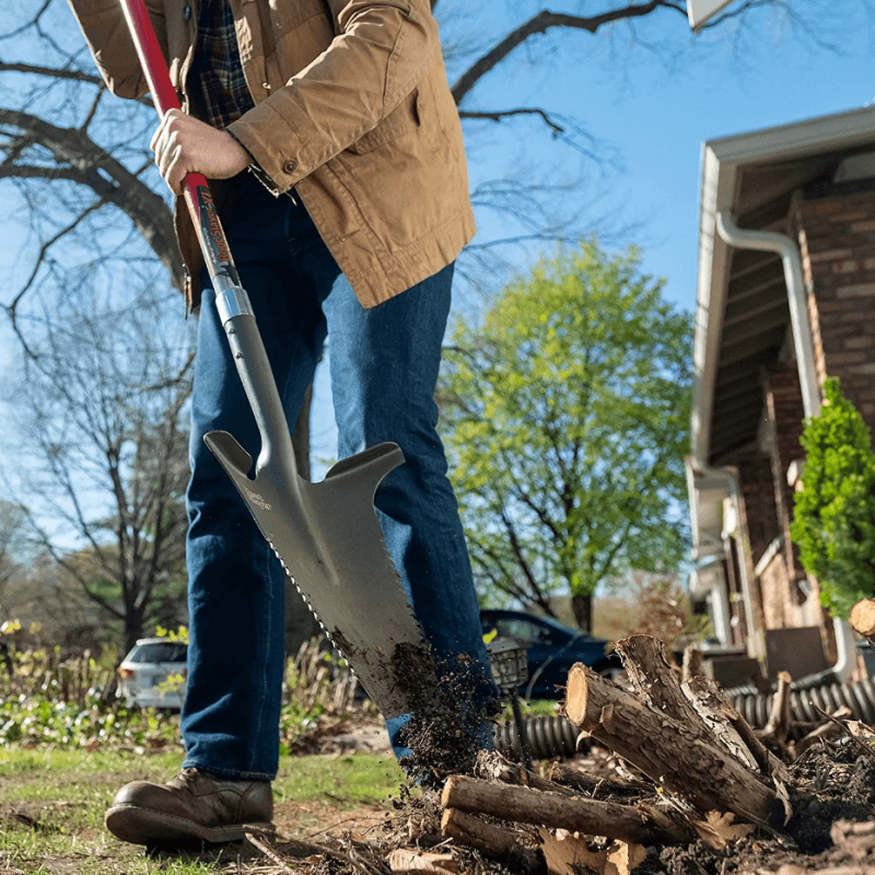 - La pelle XL ROOTSLAYER avec le manche allongé permet un meilleur confort. Possède une lame en forme de V avec des dents de scie ultra aiguisées en acier de carbone, ce qui vous permet de creuser, scier, couper, trancher. La forme et la conception de la lame en acier de carbone apportent au produit solidité et durabilité.