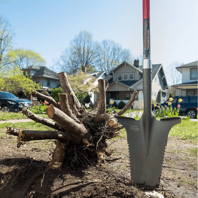 - Pelle 2en1 : La pelle XL ROOTSLAYER possède une lame en forme de V et des dents ultra aiguisées qui permet de couper les racines et autres obstructions dans le sol. Vous pourrez ainsi creuser, scier, couper, trancher.