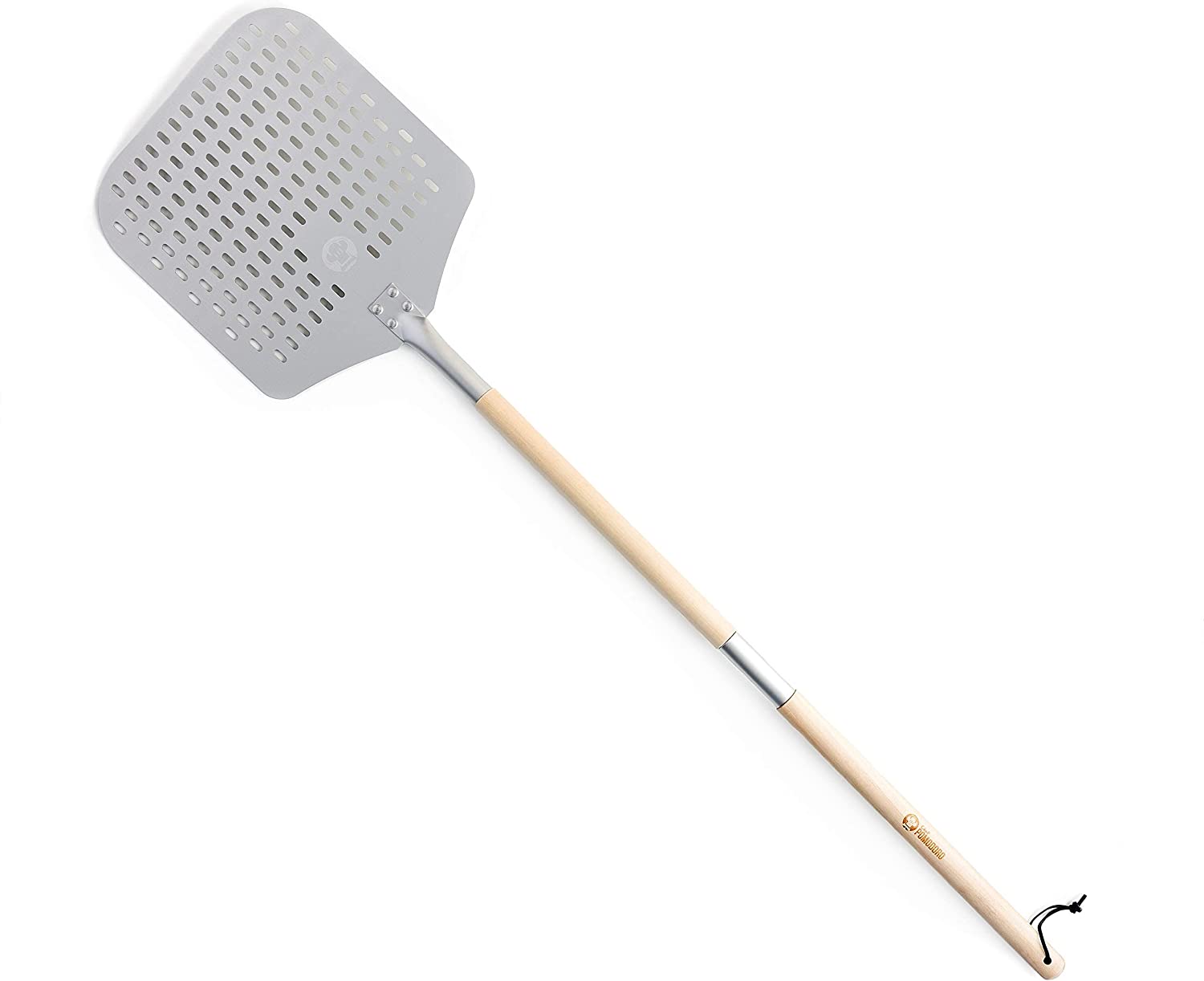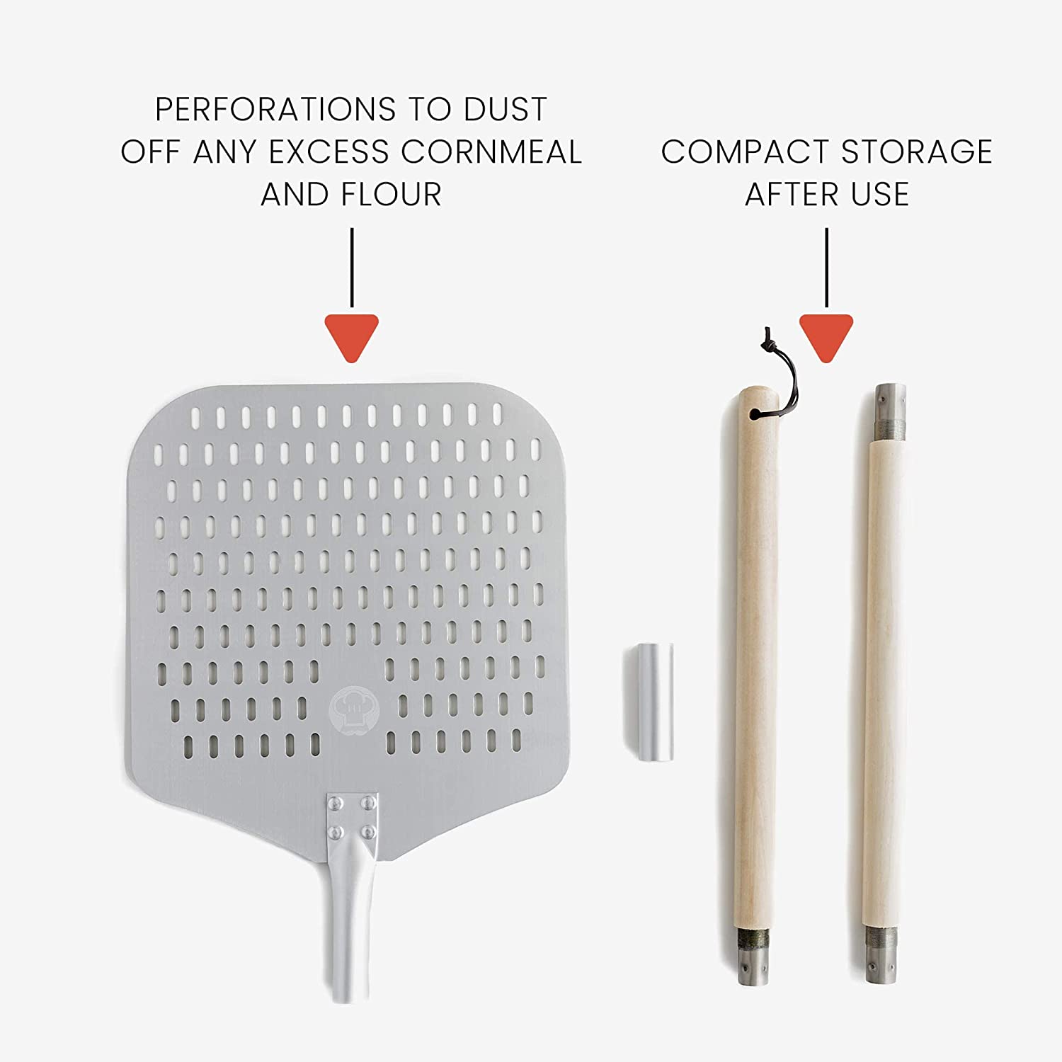 Pelle à Pizza en Aluminium Perforé avec Poignée en Bois Extensible et Détachable pour un Rangement Facile
