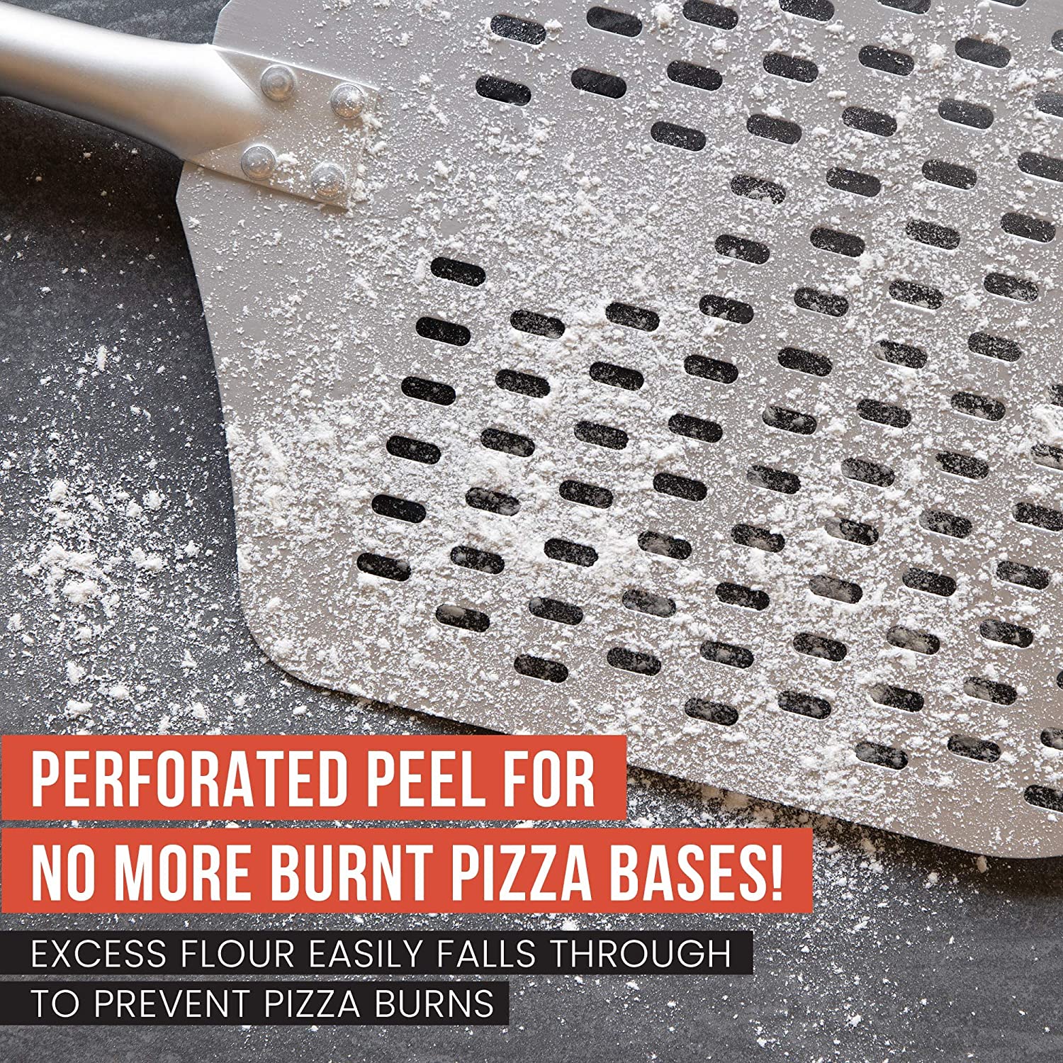 Transportez sans effort même de grandes pizzas vers et depuis votre four de qualité professionnelle avec la Pelle à Pizza Perforée Chef Pomodoro. Conçu de manière experte pour être utilisée par des chefs professionnels afin d'obtenir des pizzas artisanales parfaites à chaque fois. L'aluminium anodisé de qualité alimentaire résiste à la rouille ainsi qu'à une utilisation fréquente et à des températures élevées. Mais les perforations parfaitement placées ne sont que le début du spectacle ! Ils réduisent la friction, ce qui rend incroyablement facile de faire glisser votre pizza à l'intérieur et hors du four. De plus, ils forcent le nettoyage de l'excès de semoule de maïs et de farine sur le fond de votre pâte non cuite, pour vous éviter de vous retrouver avec des croûtes brûlées.