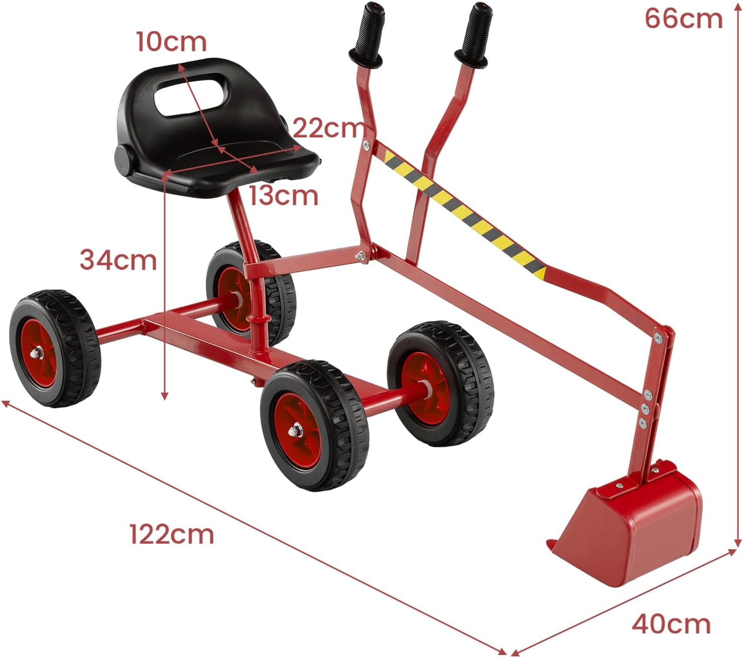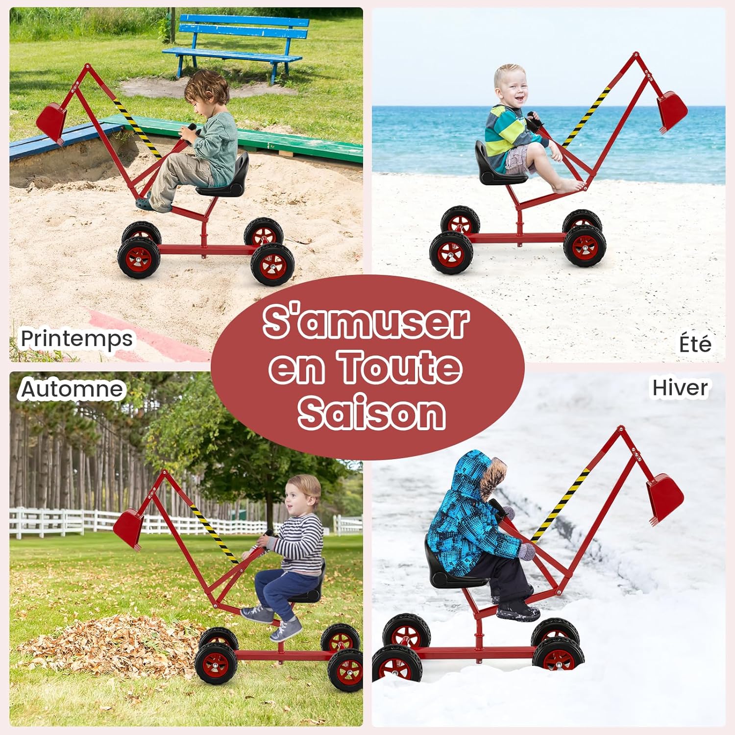 | Libellé | Pelleteuse enfant, jouet à excavatrice manuelle siège pivotant à 360° 2 bras 4 roues antidérapantes,rouge |
