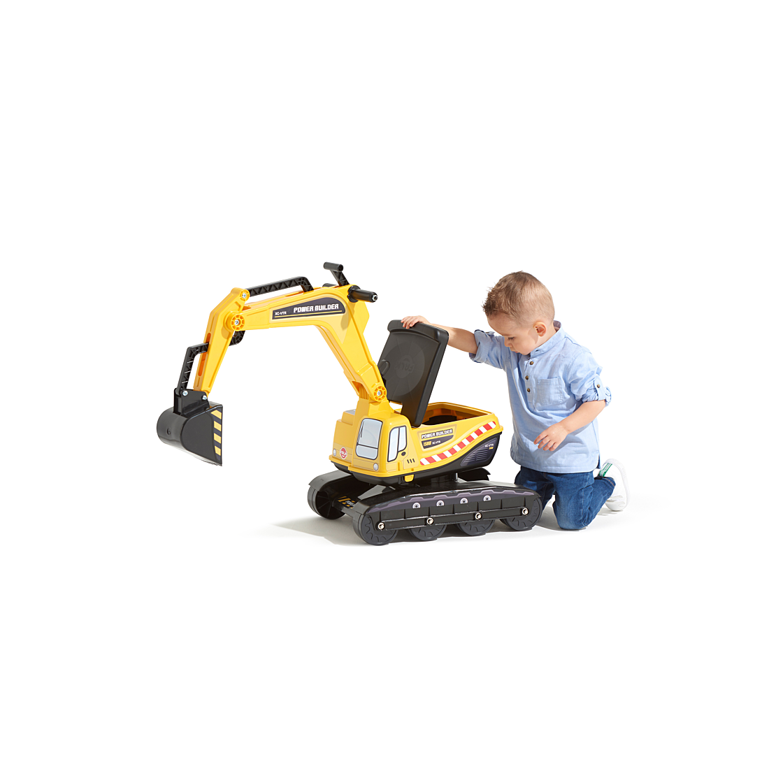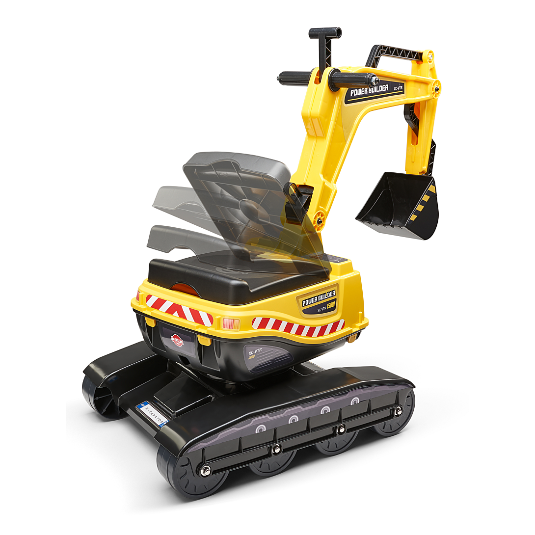 | Informations complémentaires | Pelleteuse avec cabine rotative à 360° , Bras de pelle et godet articulés , Assise ouvrante , 100% made in France , Dès 3 ans |