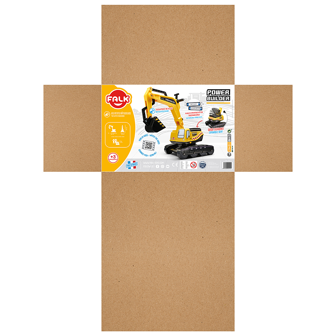 | Libellé | Pelleteuse Falk Power Builder jaune avec cabine rotative à 360°, bras de pelle et godet articulés et assise ouvrante - 100% made in France pour les |