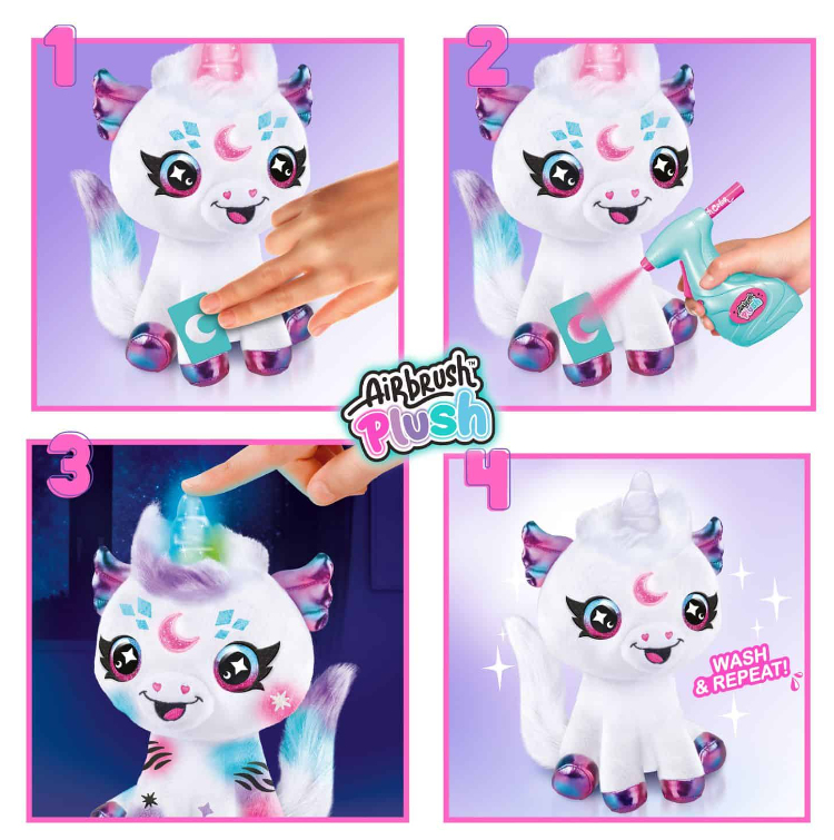 Amuse-toi à personnaliser ta peluche à l'aide de ton spray, de tes feutres et de tes pochoirs. Lave ta peluche et recommence à l'infini !